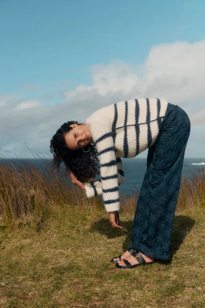 Rita Hand Painted Irregular Stripe Design Sweater in Alpaca Blend