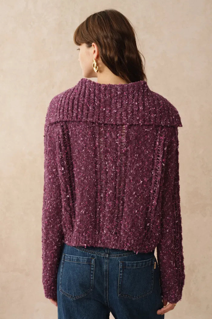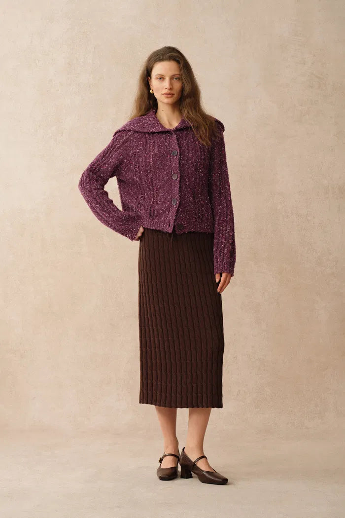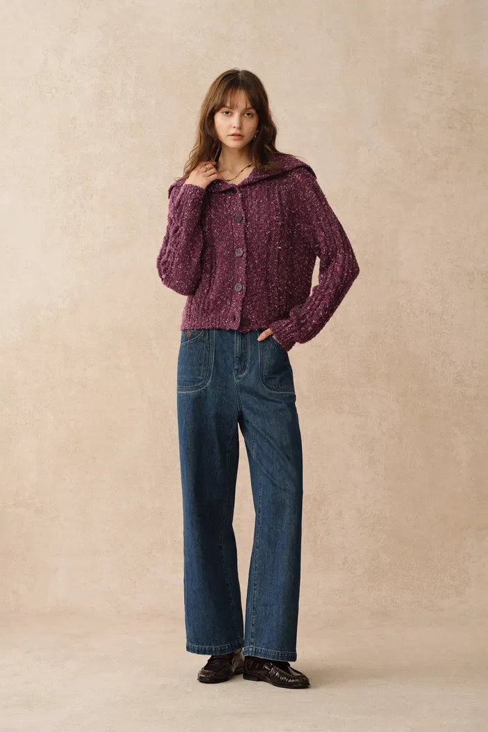 Rosalina Convertible Shawl Collar Cardigan in Merino Wool Cable Knit