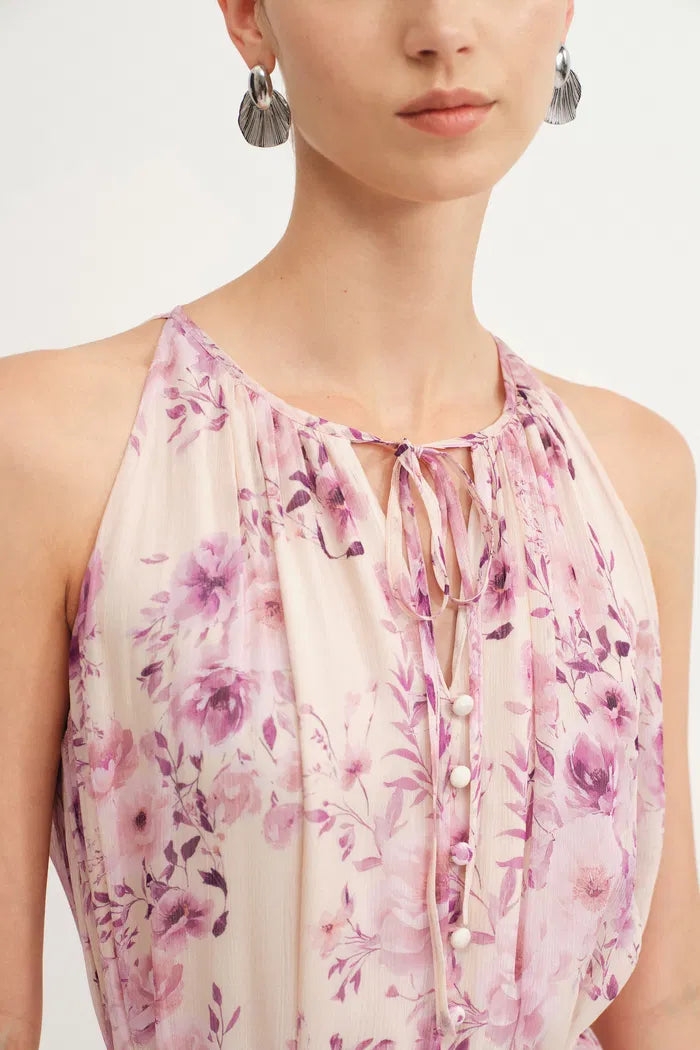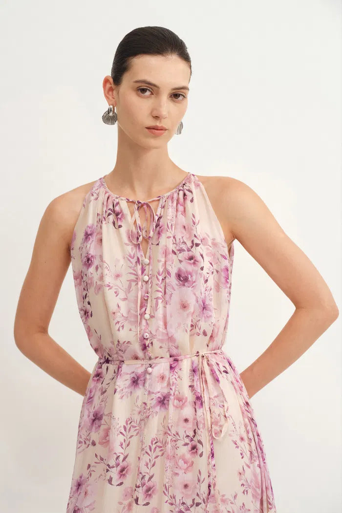 Sally Hand Painted Flora Ruffle Dress in Summer Sheer