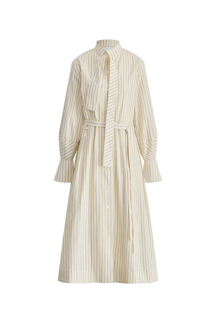 Sandy Italian Striped Midi Shirt Dress in Cotton Poplin