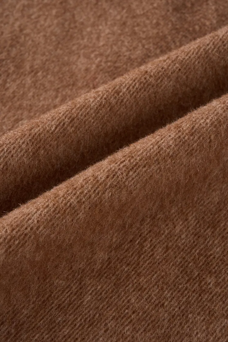 Selva Short Leather Trim Hooded Wool Coat in Merino-Alpaca Twill