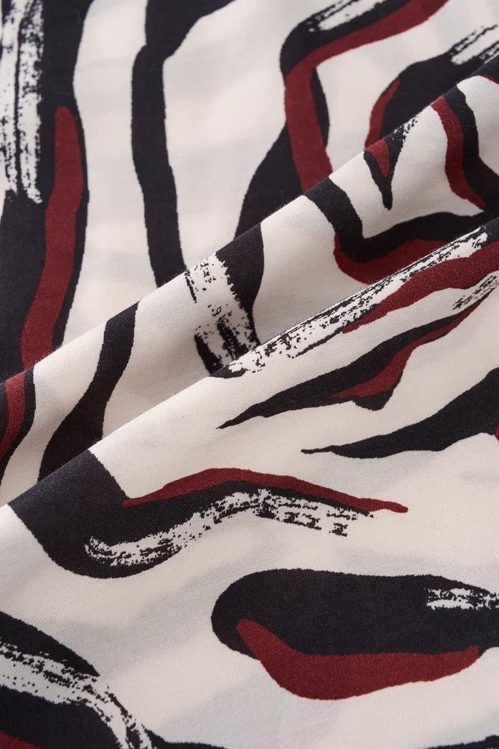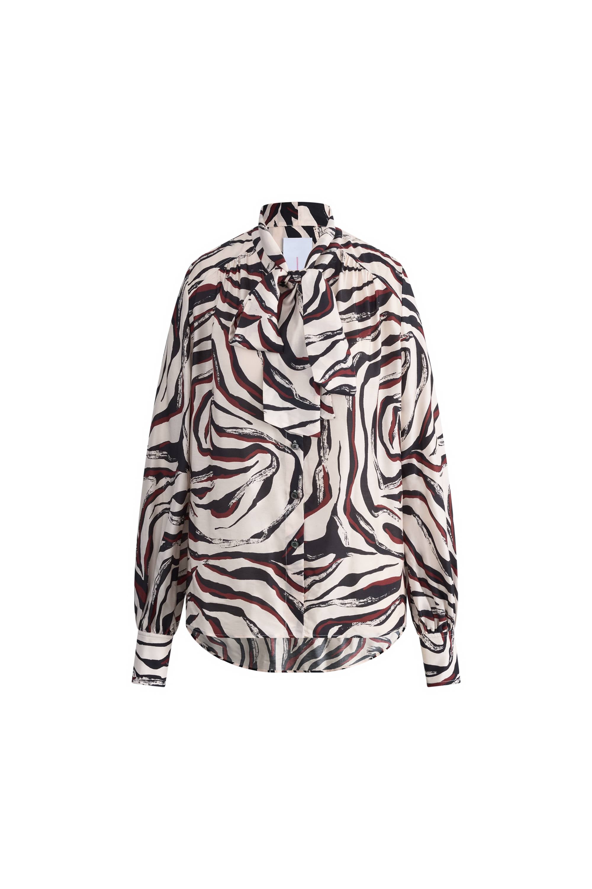 Shakti Hand Painted Zebra Print Flowing Tie Blouse in Silk-Wool Fine Twill