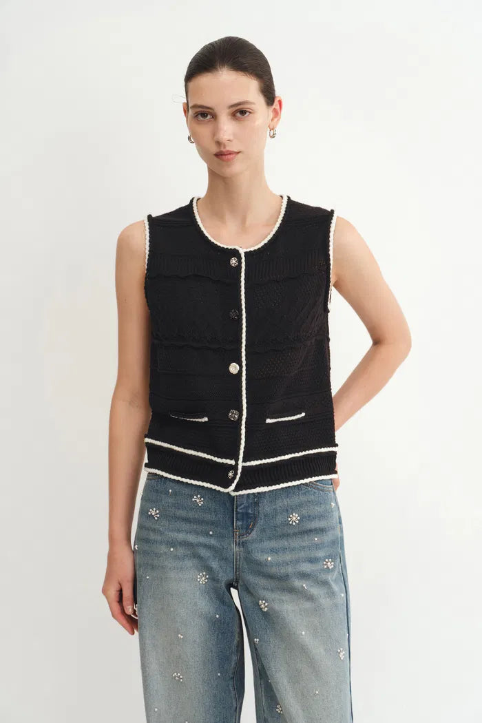 Silvy Tweed Sleeveless Top in Textured Cotton