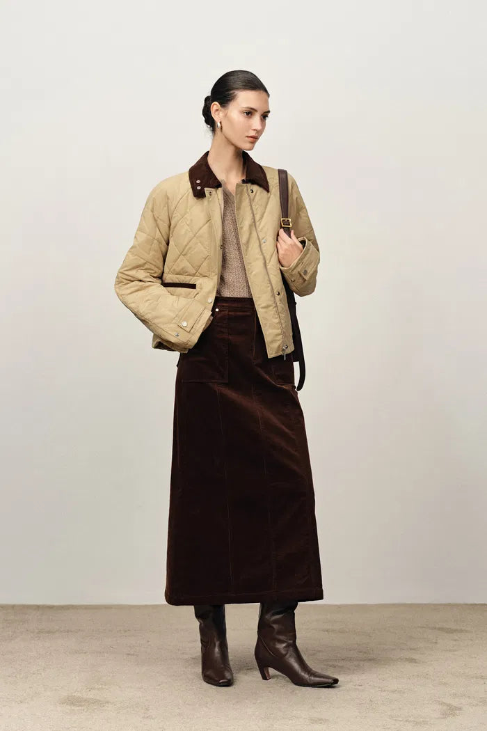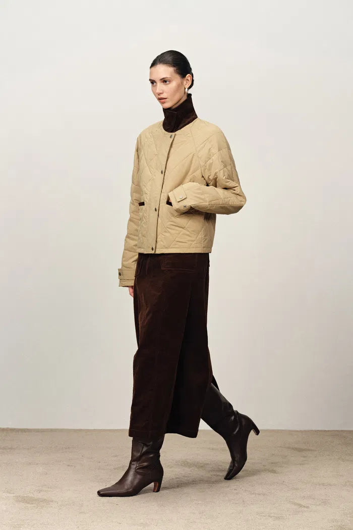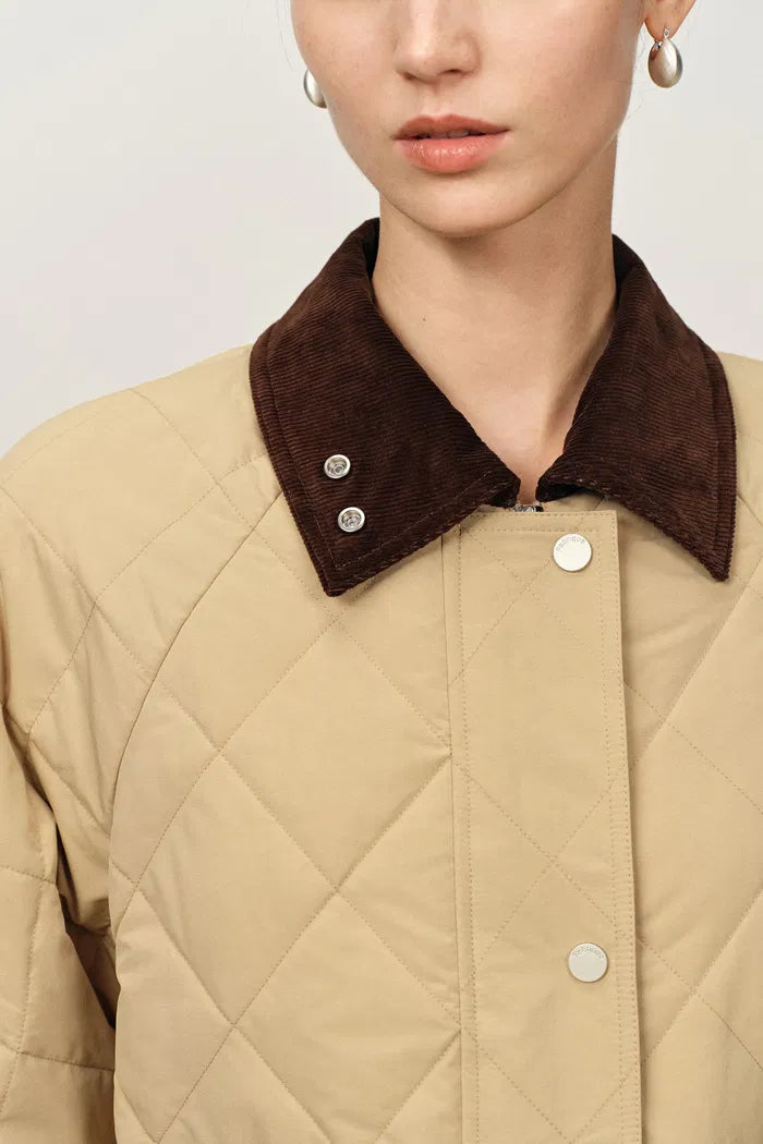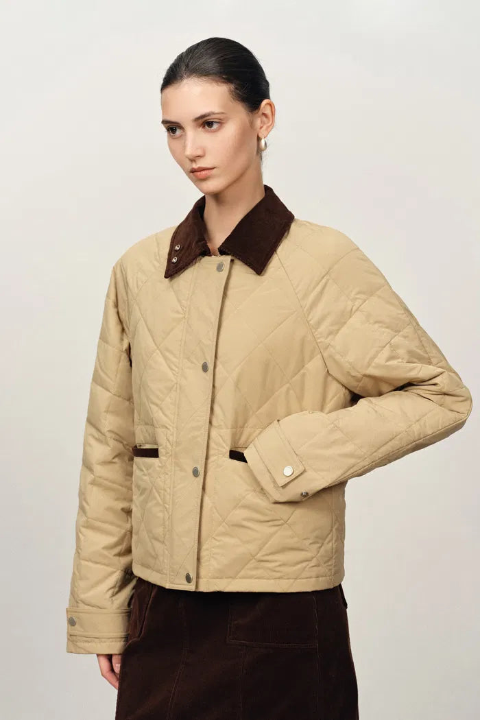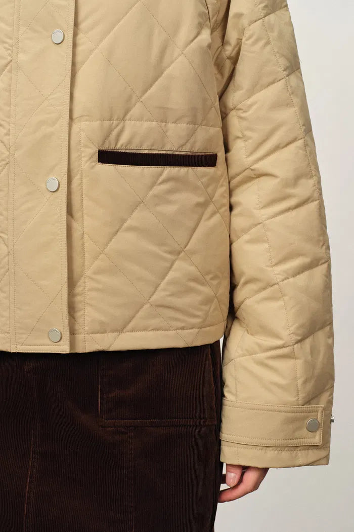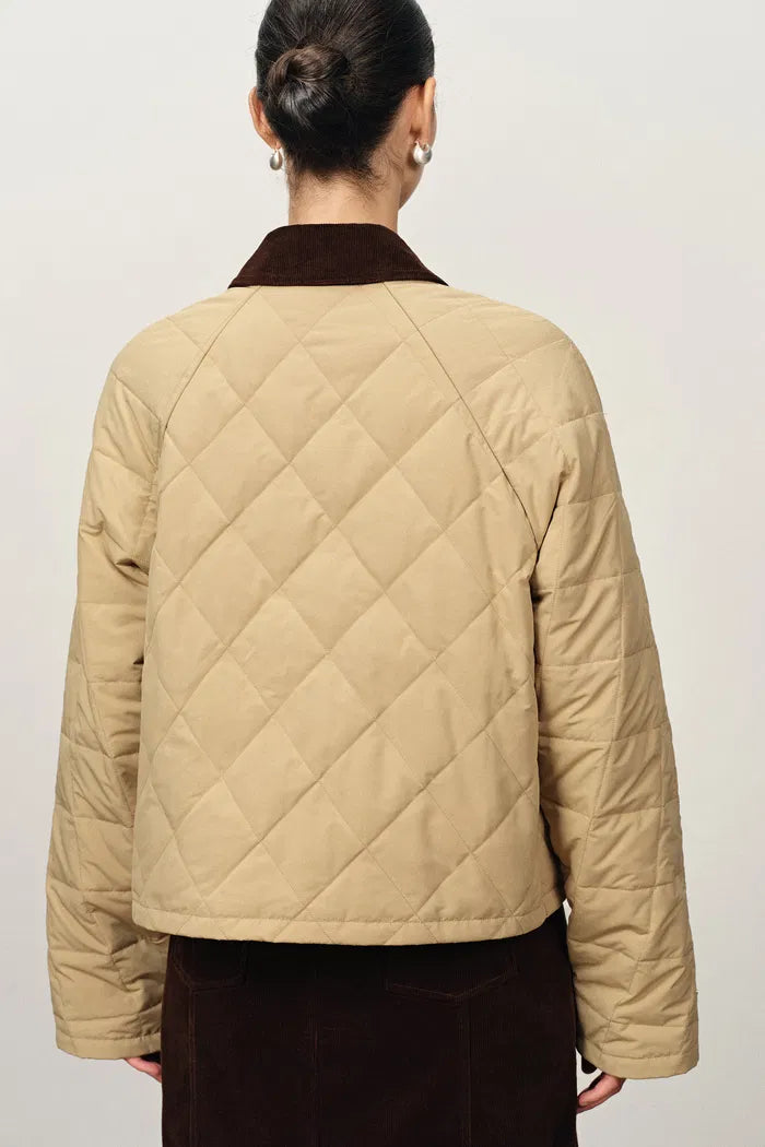 Skye Contrast Collar Cropped Quilted Down Jacket in Water-Resistant Cotton