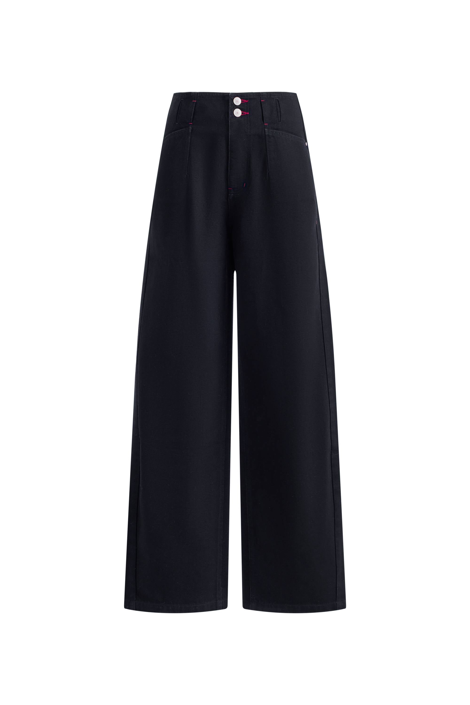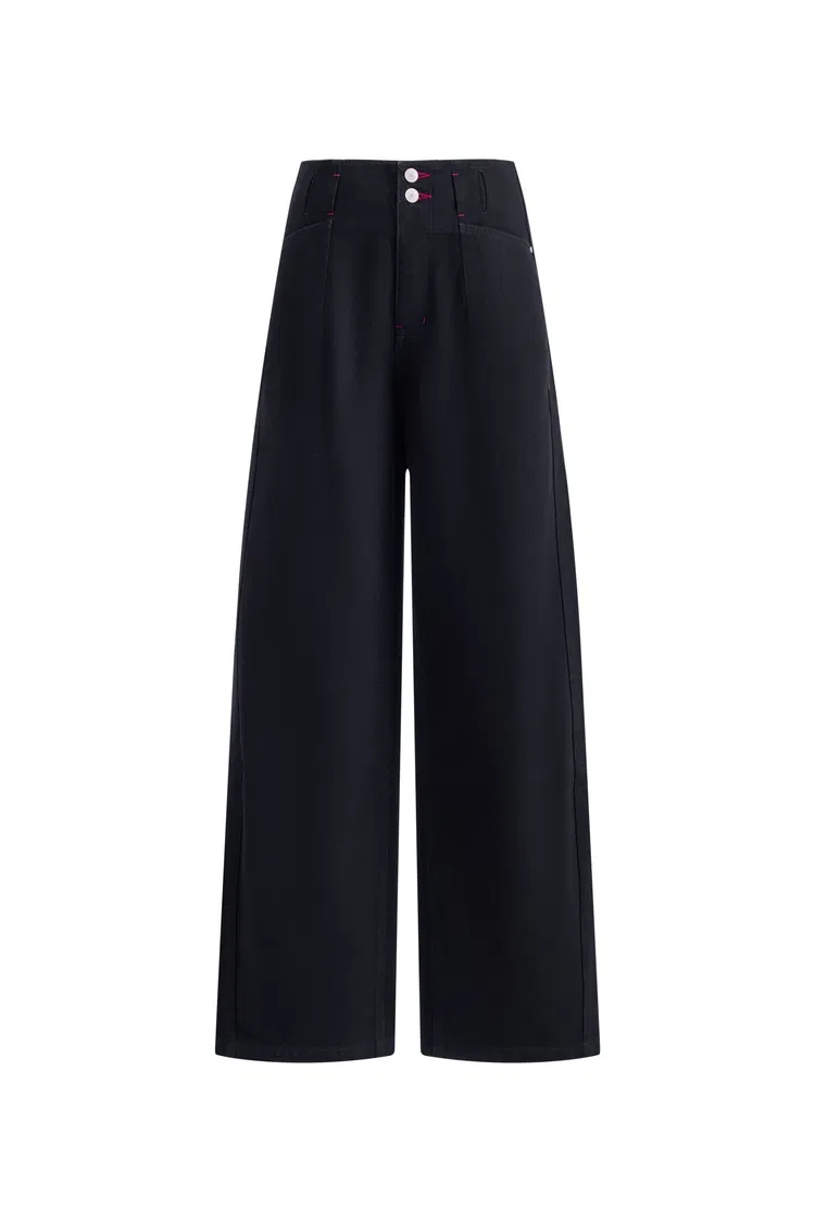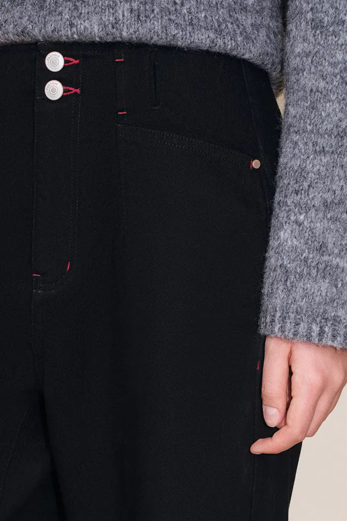 Soft Sculpture Contrast Stitch Barrel Leg Jeans in Cotton Denim
