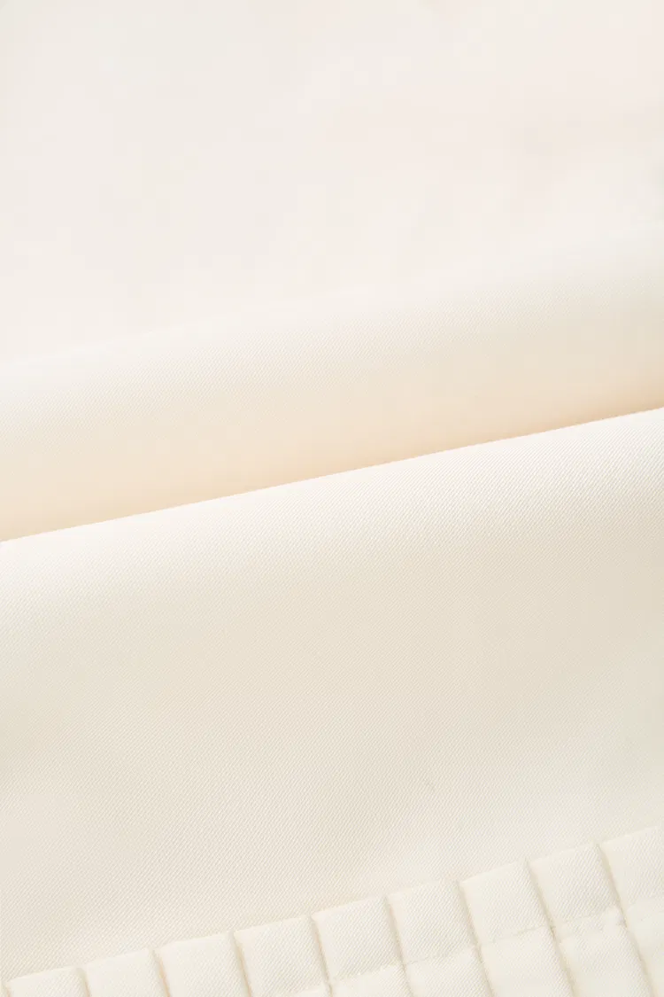 Lightweight blended suit fabric with a light, crisp touch; resistant to wrinkling and deformation for daily wear, maintaining an elegant state while delivering a three-dimensional, spirited silhouette and freedom of stretch.