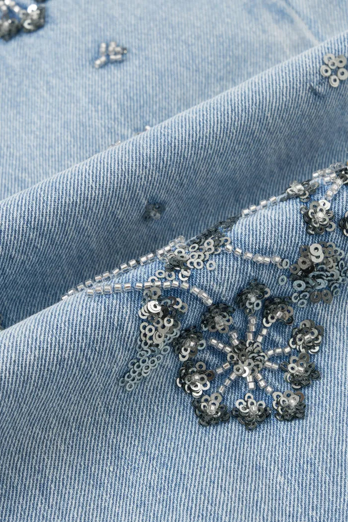 Star Straight Leg Jeans in Beaded Cotton Denim
