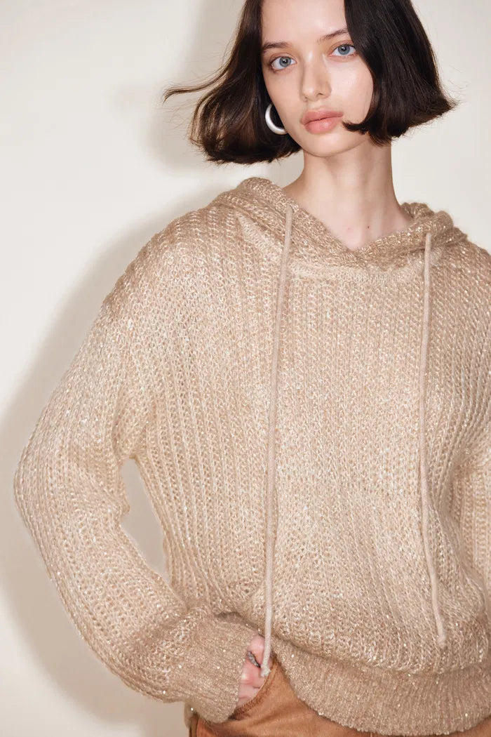Stella Drawstring Sequined Hooded Sweatshirt in Mohair Sequin Yarn