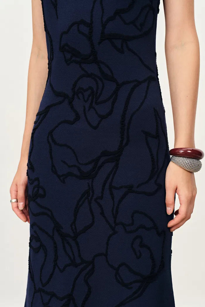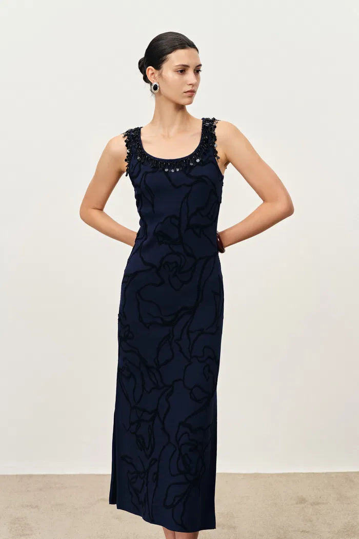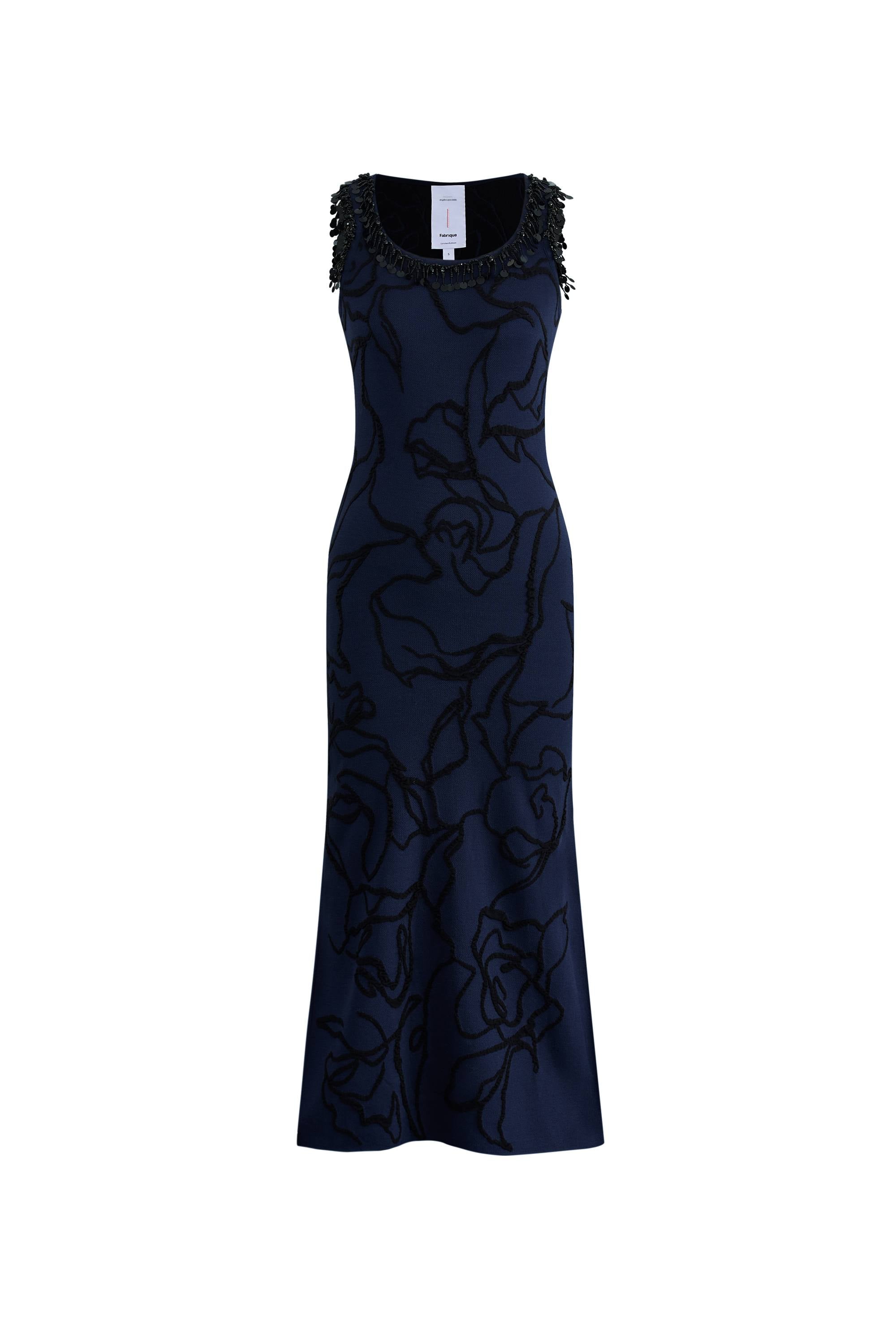 Stella Fringed Sleeveless Midi Dress in Cotton-Elite Yarn Knit