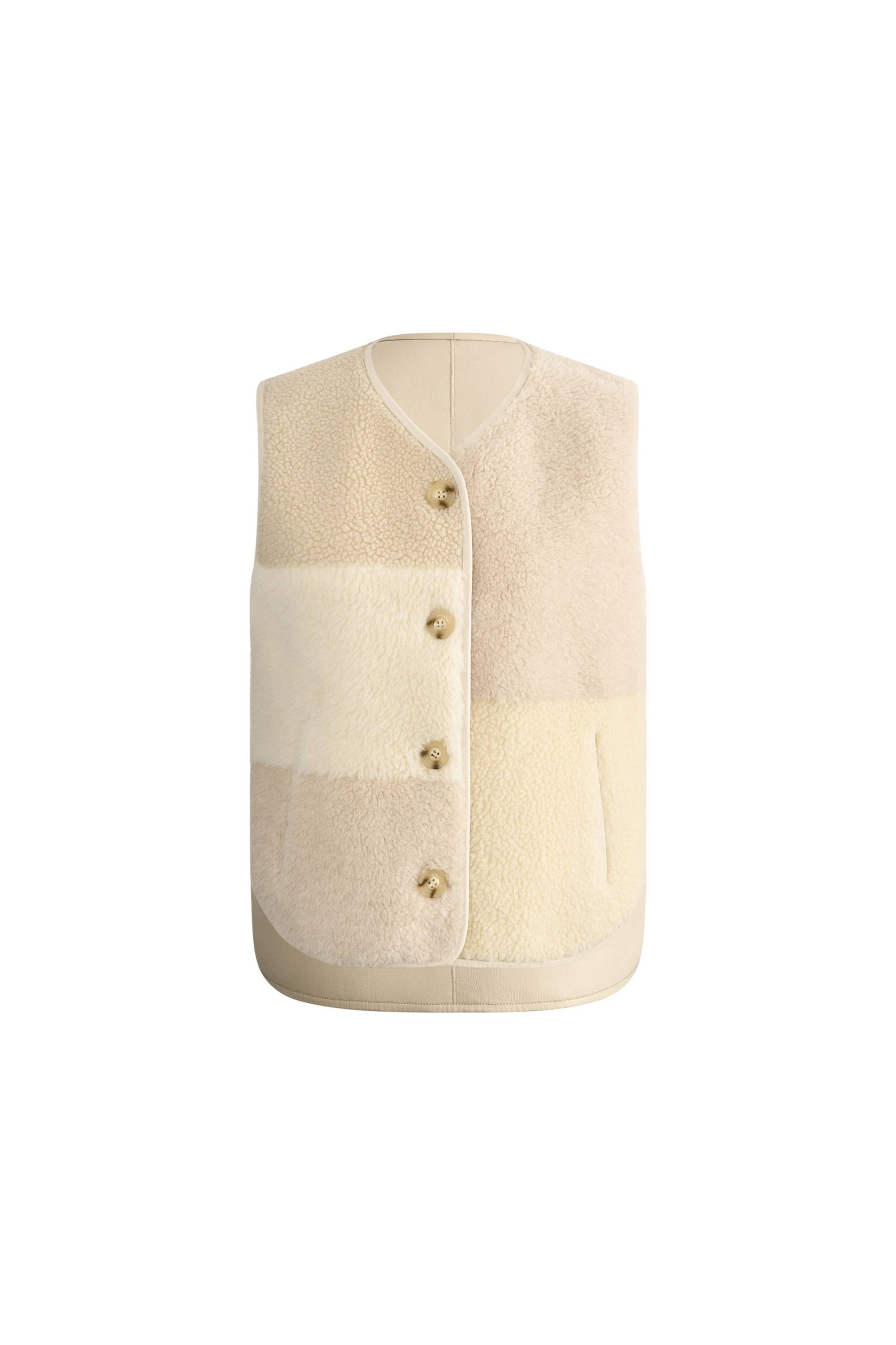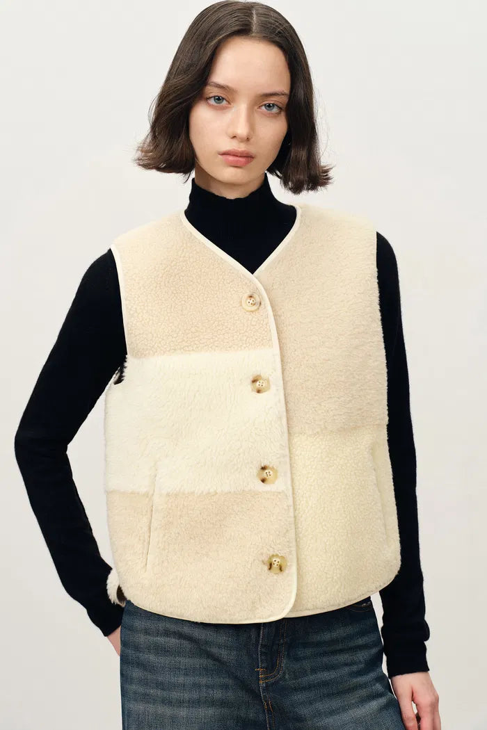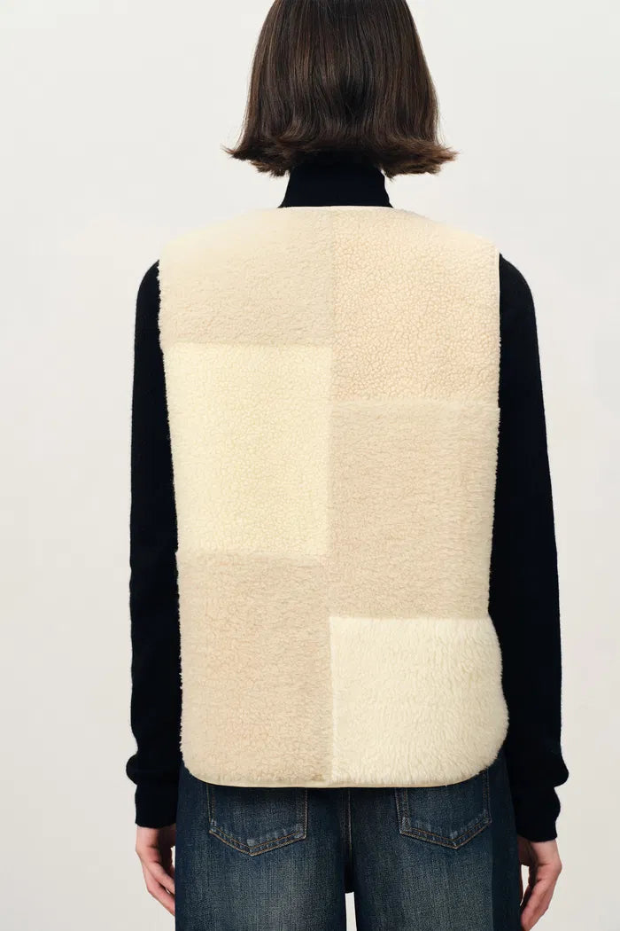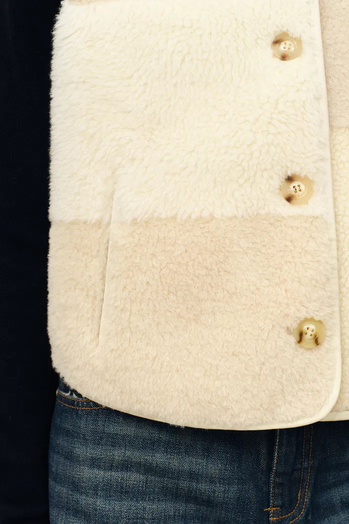 Stoke Reversible Color Block Lambswool Vest Jacket in Merino Wool Teddy