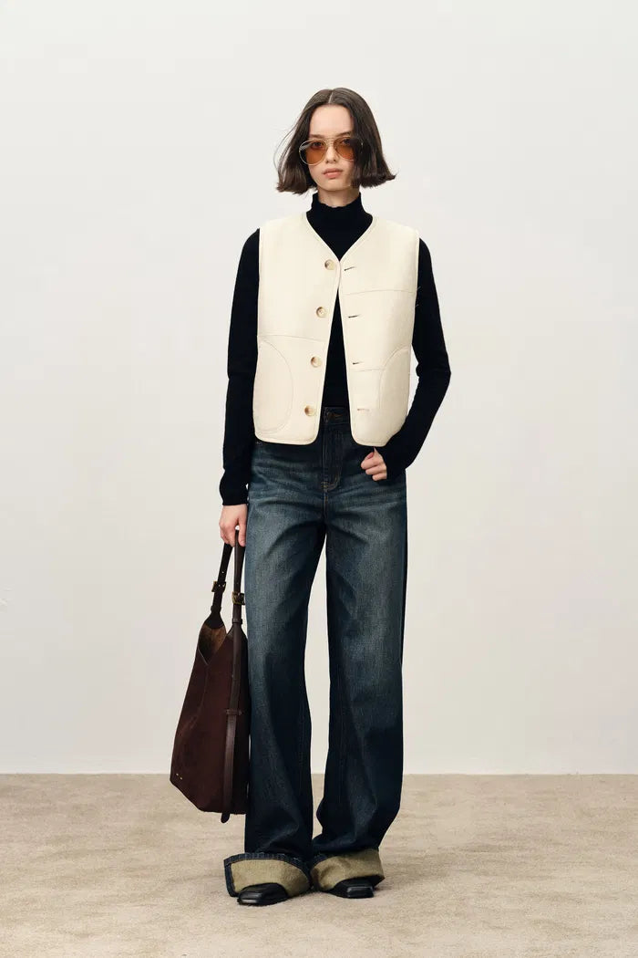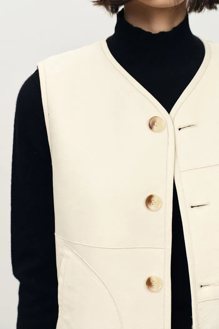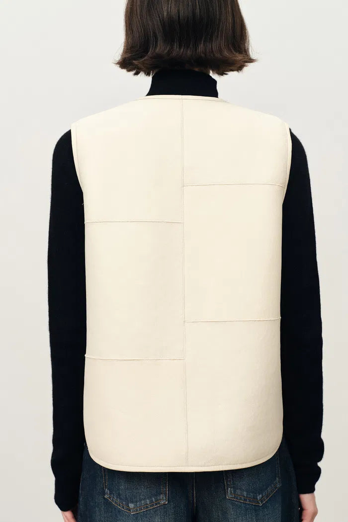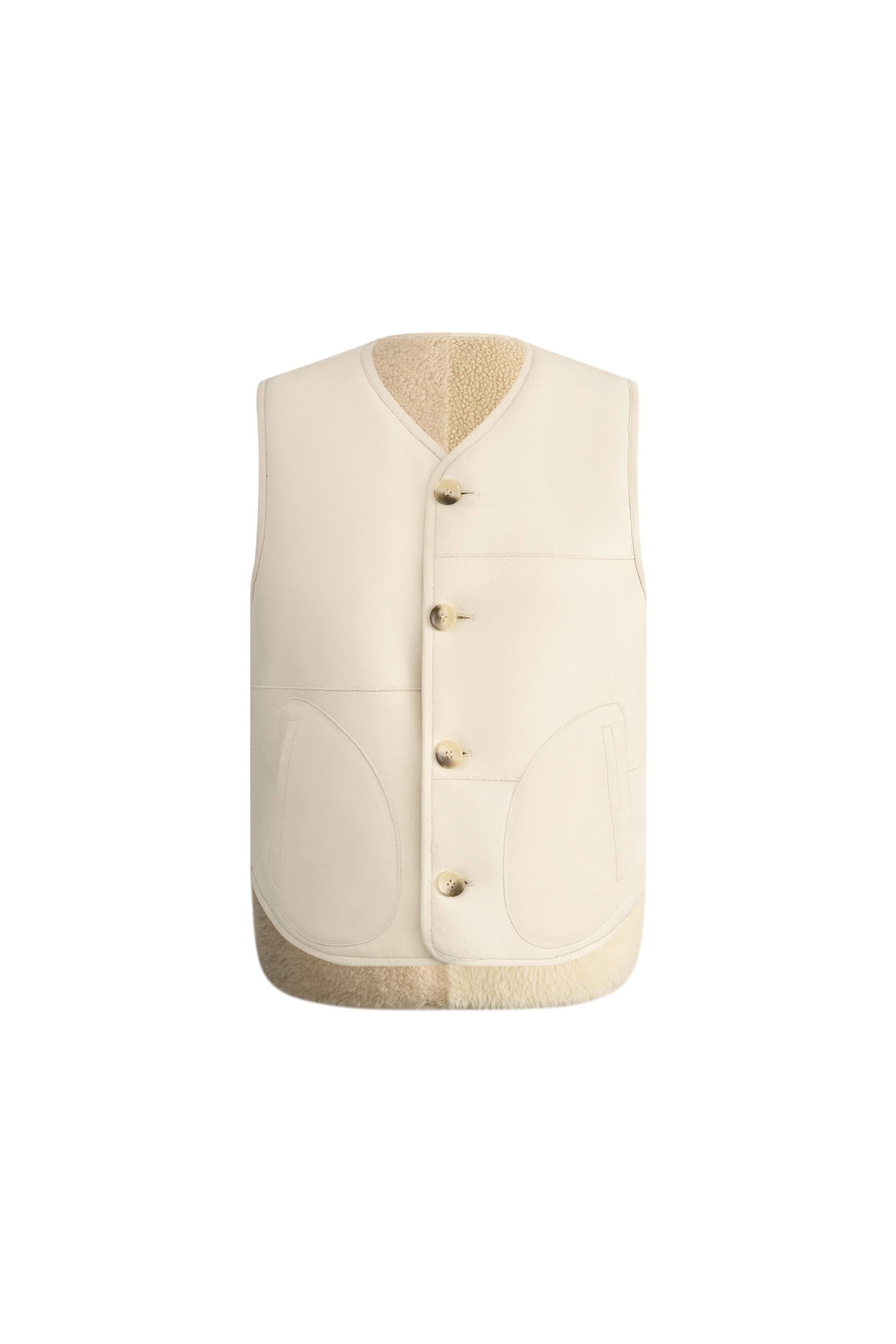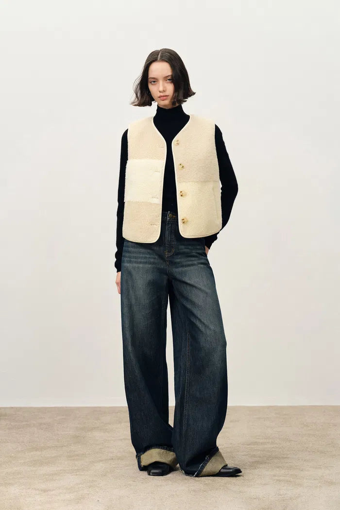 Stoke Reversible Color Block Lambswool Vest Jacket in Merino Wool Teddy