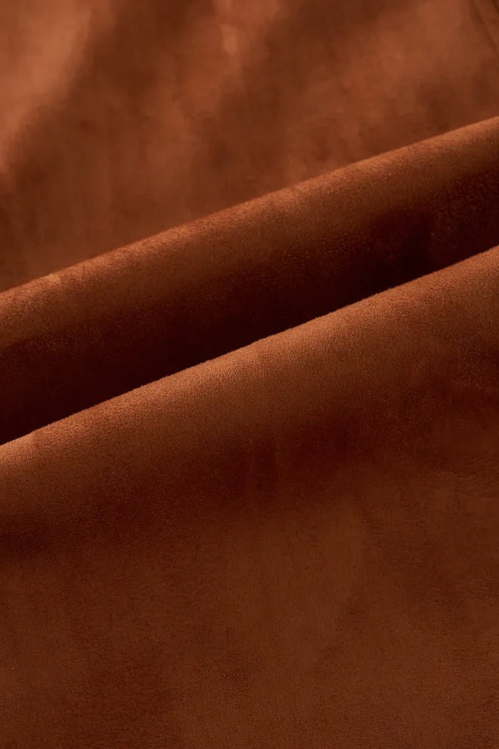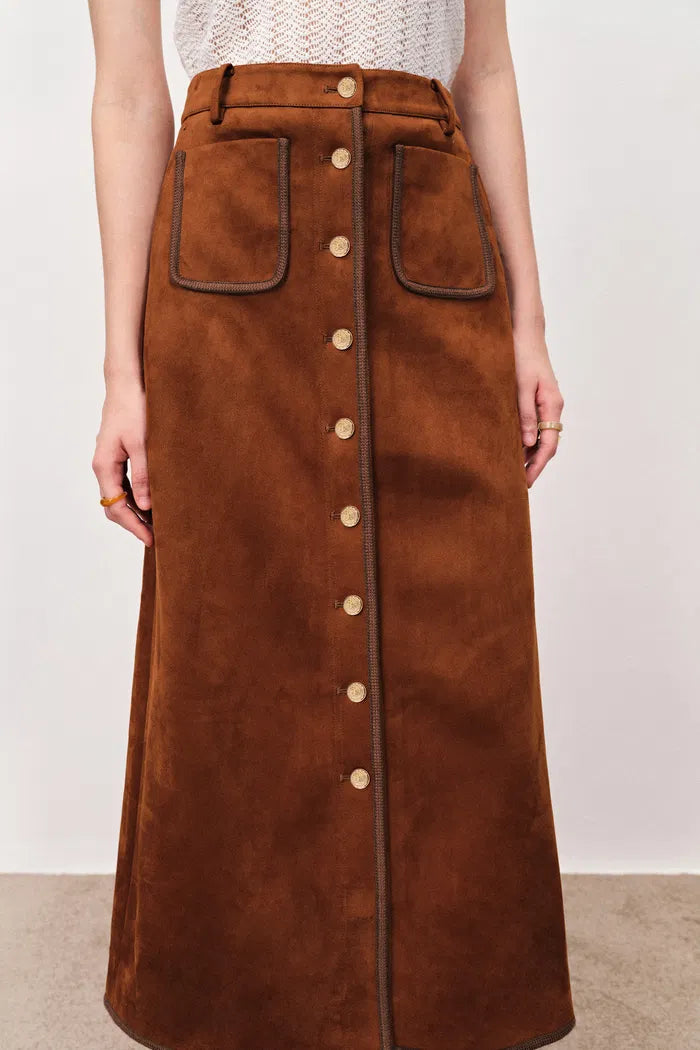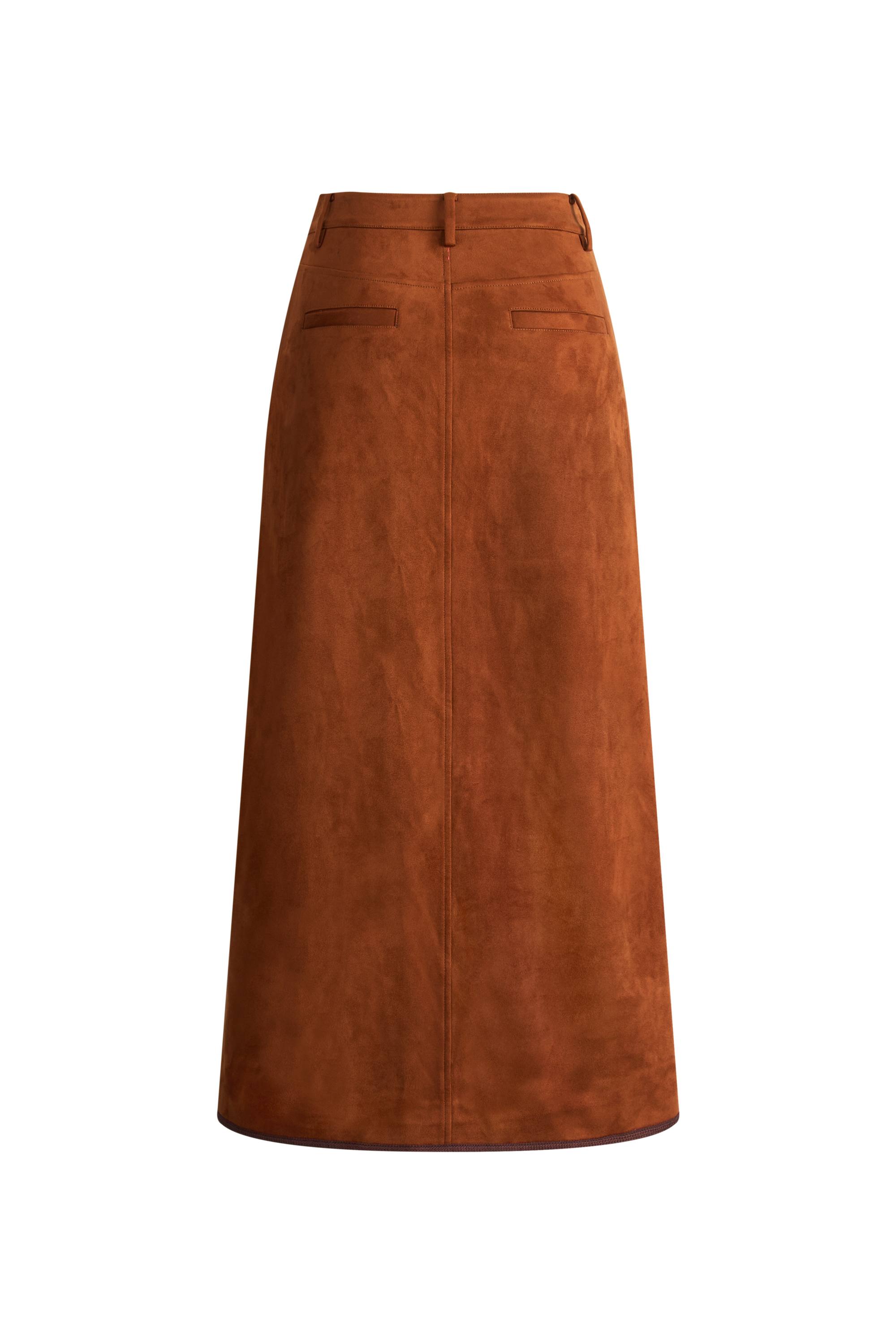Sunny Contrast Trim Midi Skirt in Faux Suede