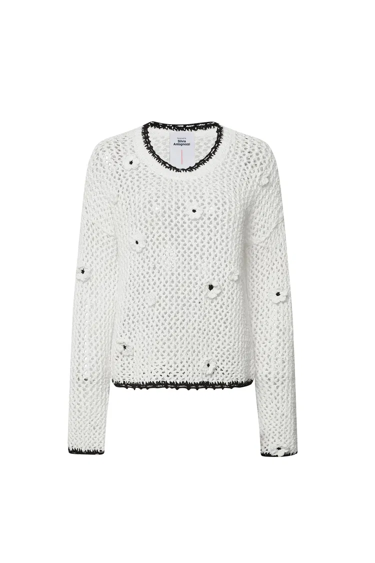 Susanne Crochet Hollow-Out Pullover in Cotton