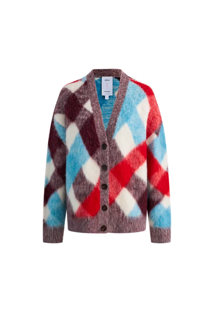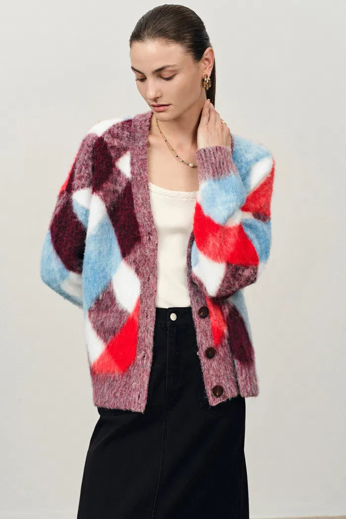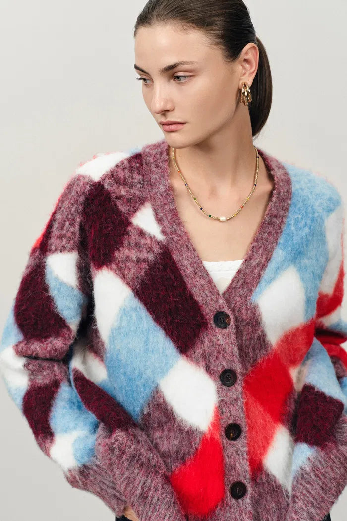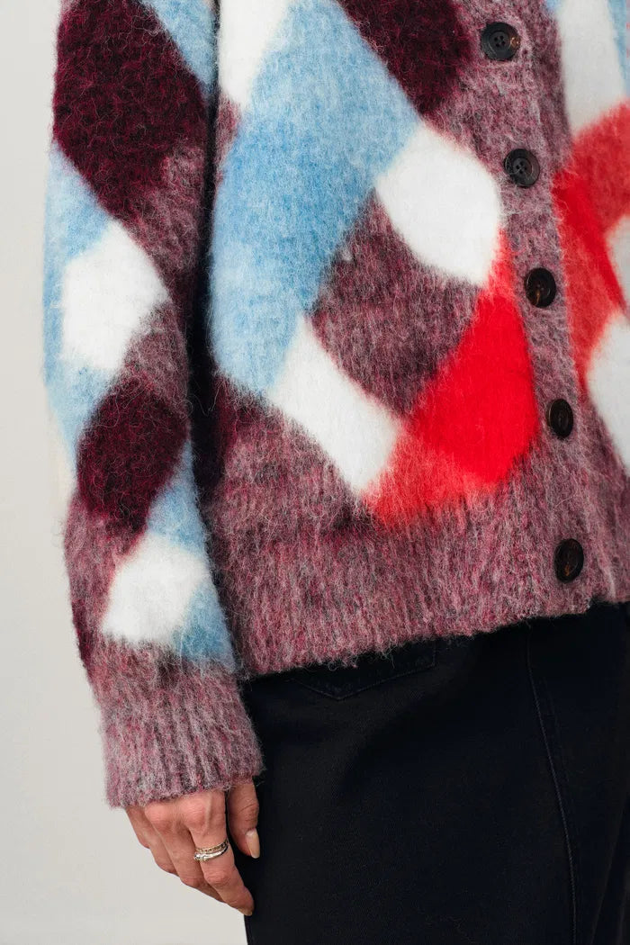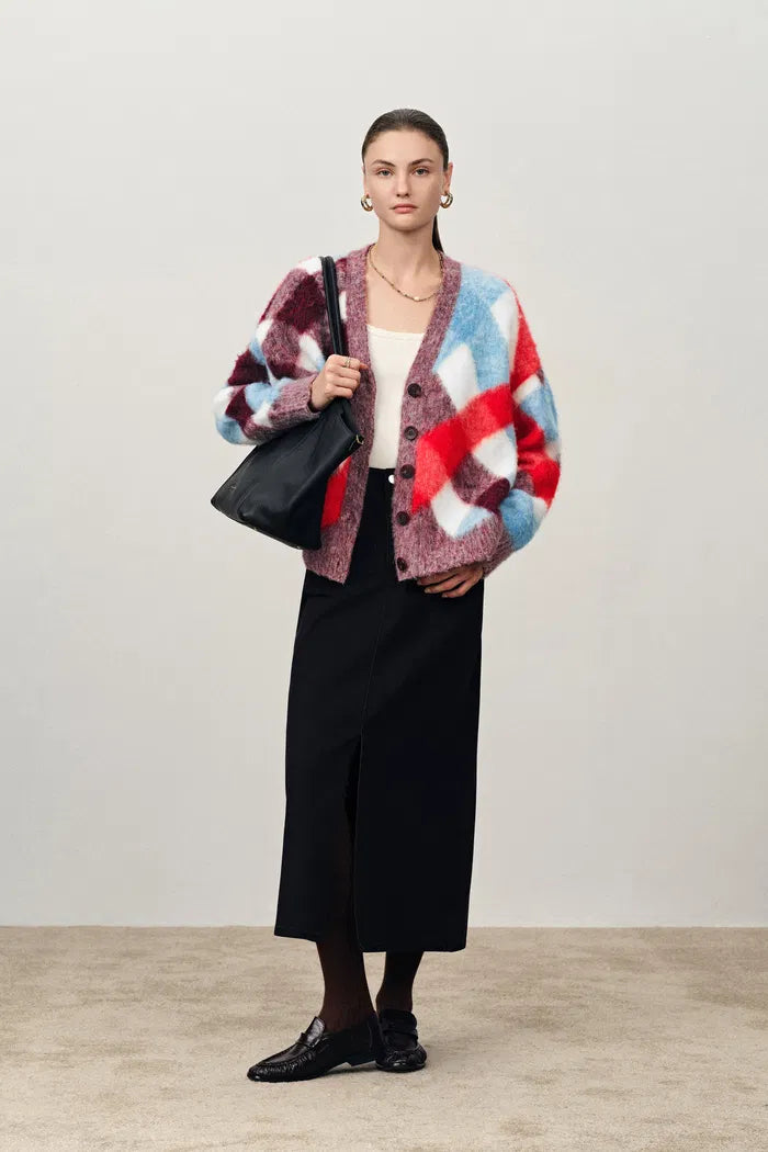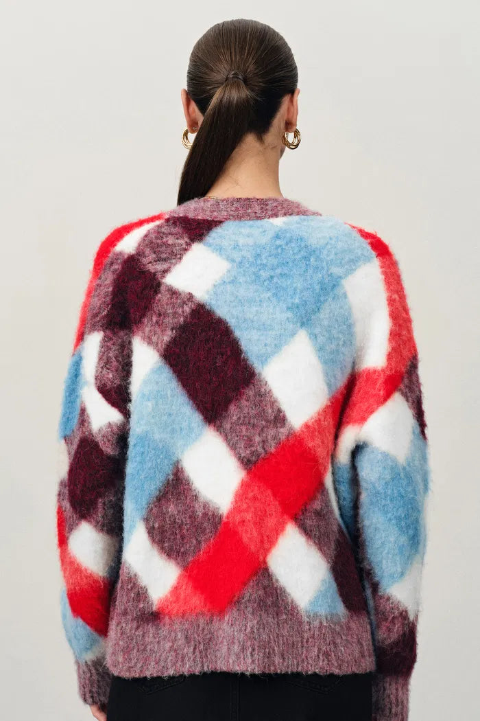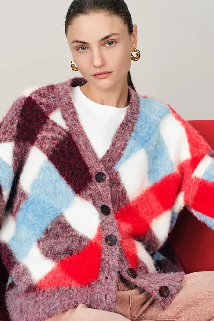 Svala Twisted Plaid Cropped Cardigan in Wool Alpaca Blend