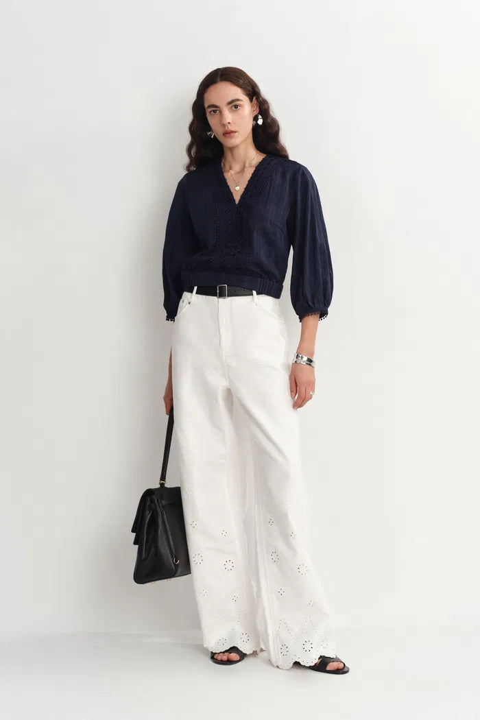 Elli Embroidery Puff Sleeve Blouse Top in Cotton