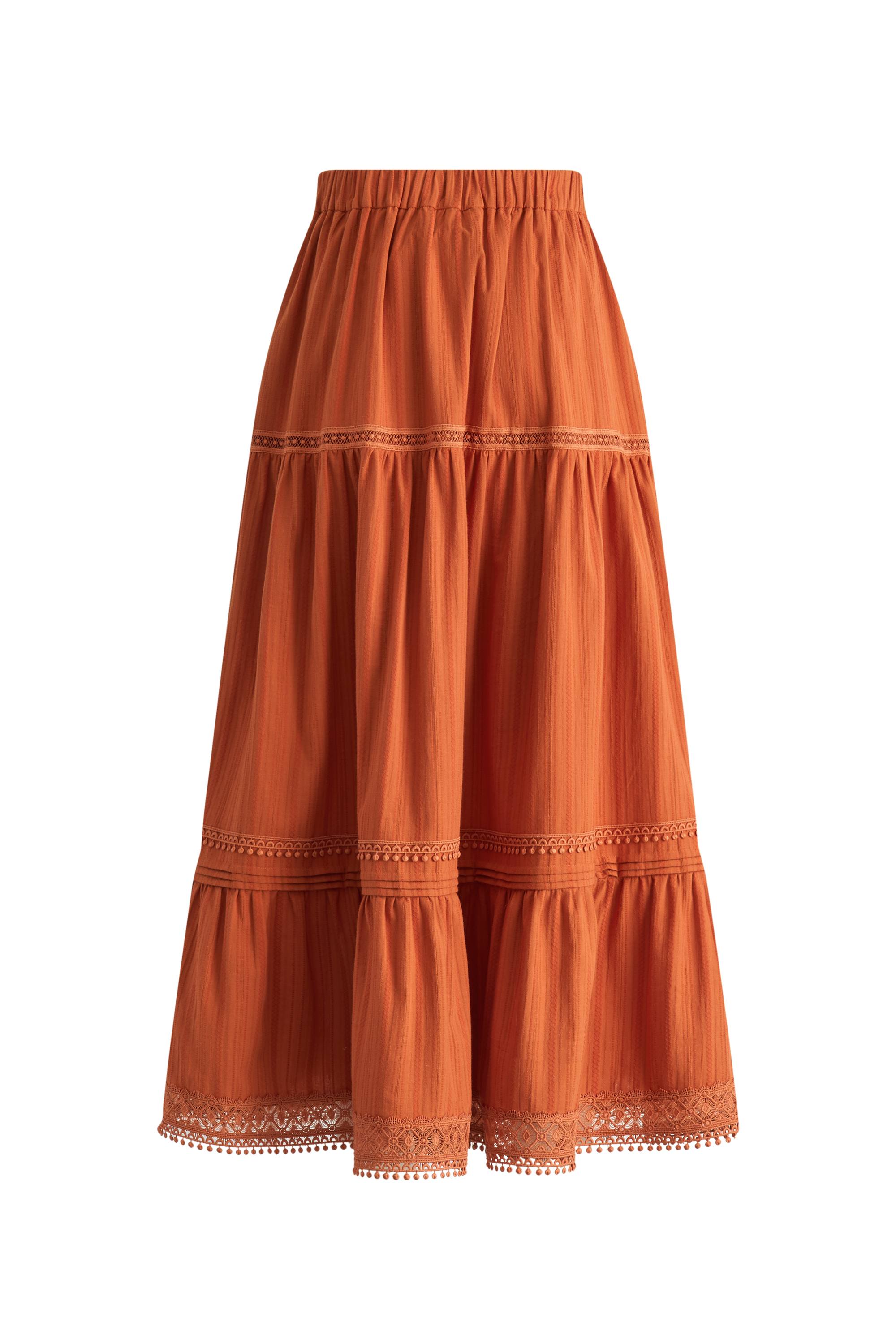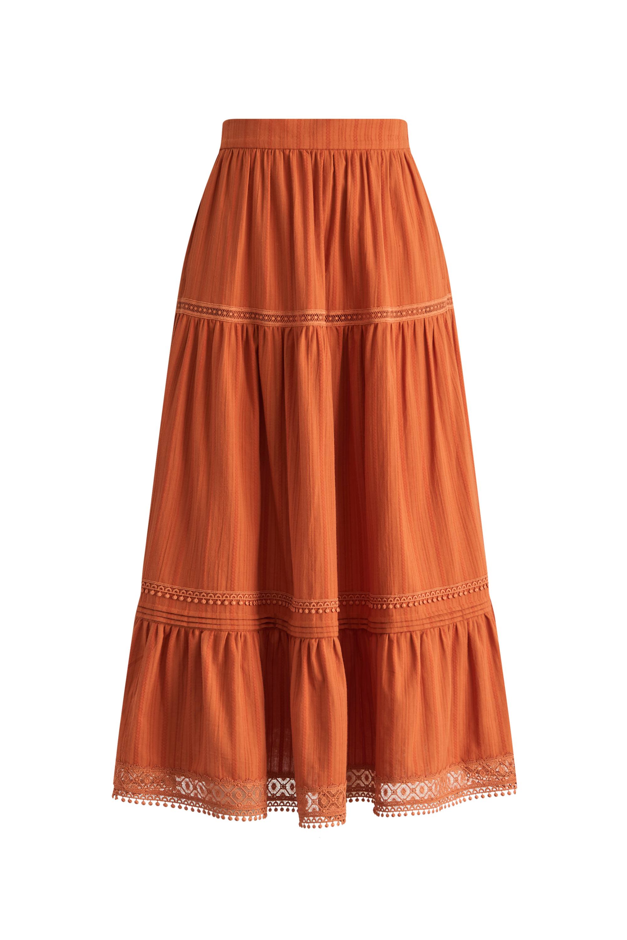 Sybilla Tiered Openwork Maxi Skirt in Cotton