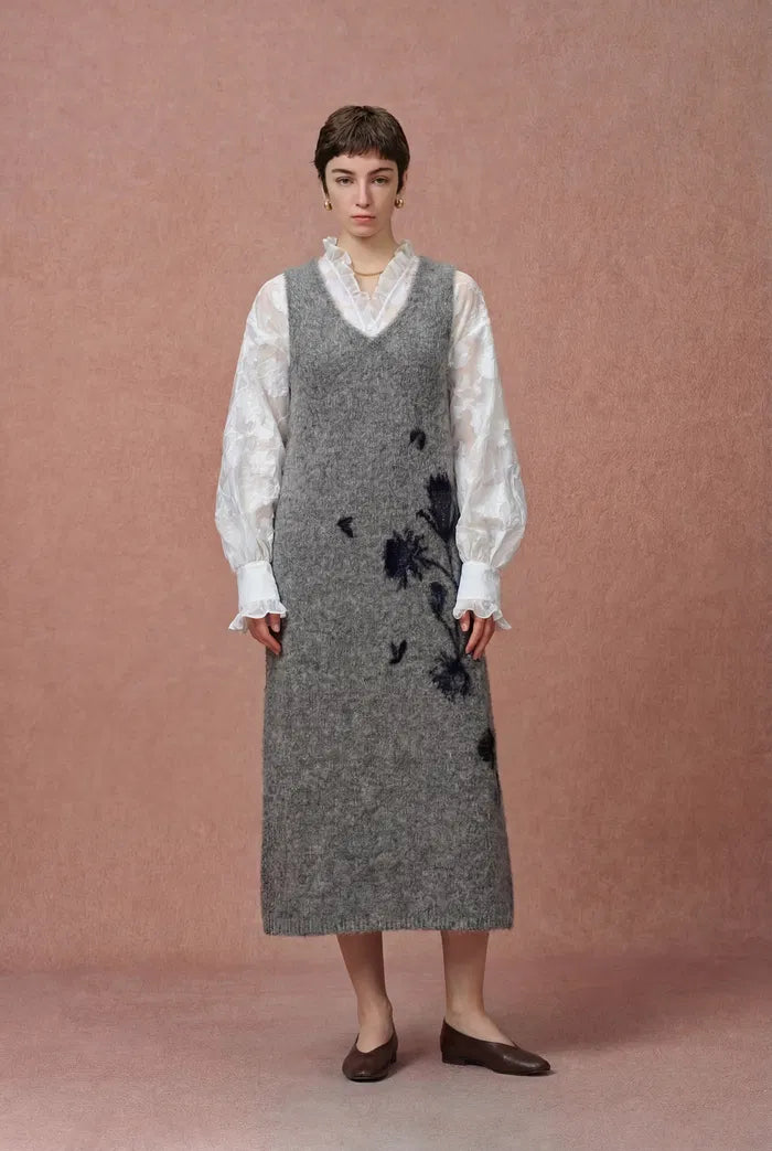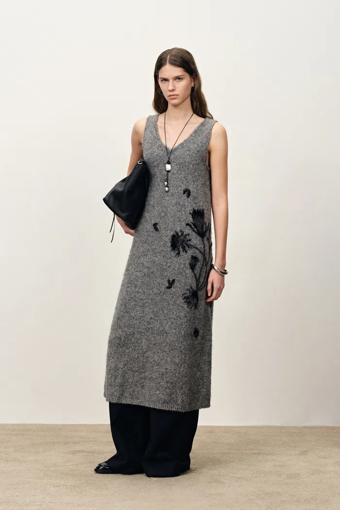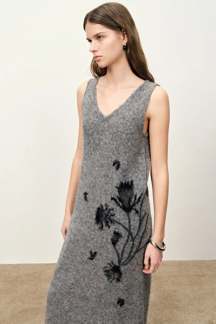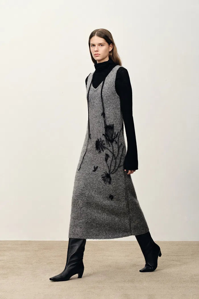 Tania Intarsia Sleeveless Dress in Merino Alpaca Wool Blend Knit