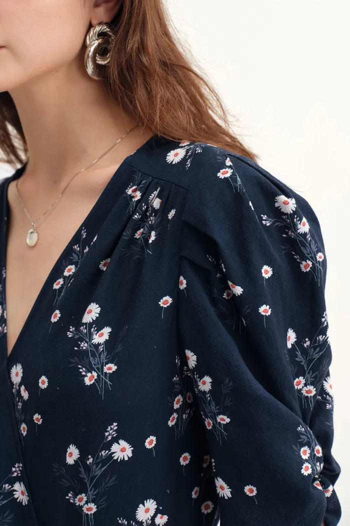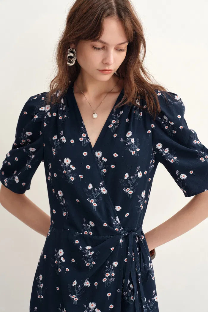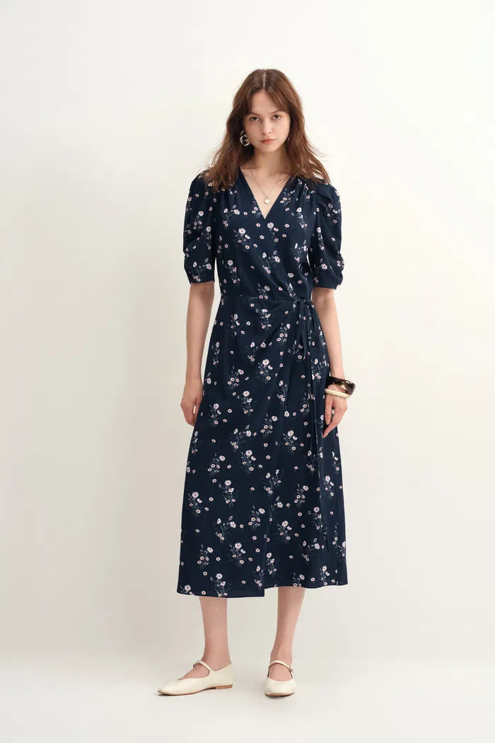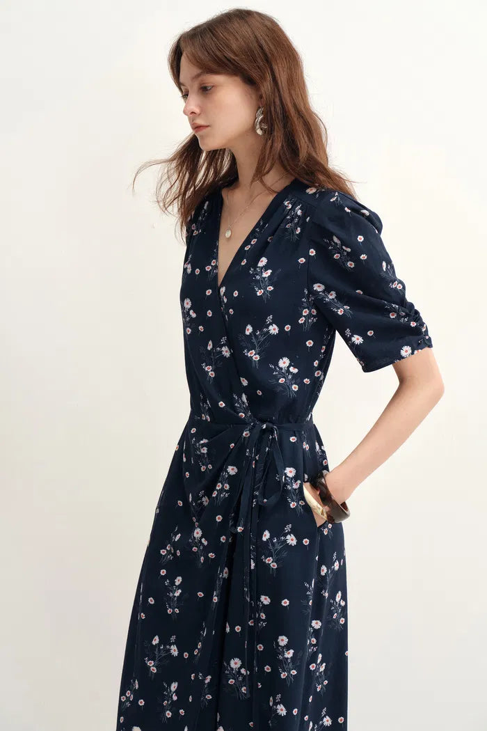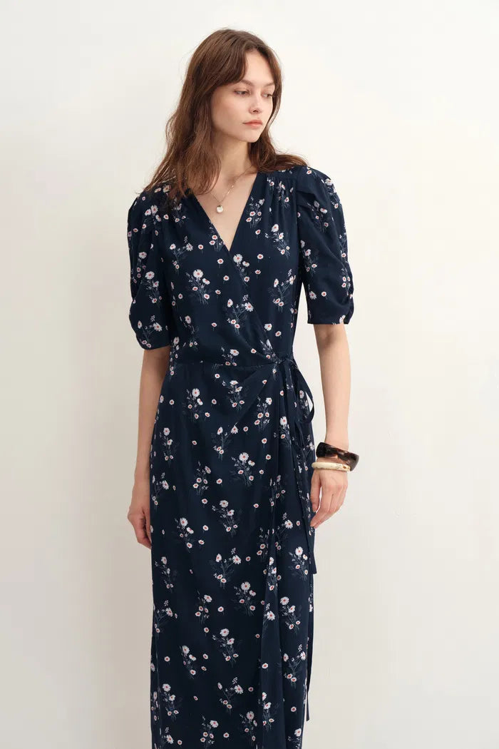 Teana French Floral Wrap Midi Dress in Tencel Blend
