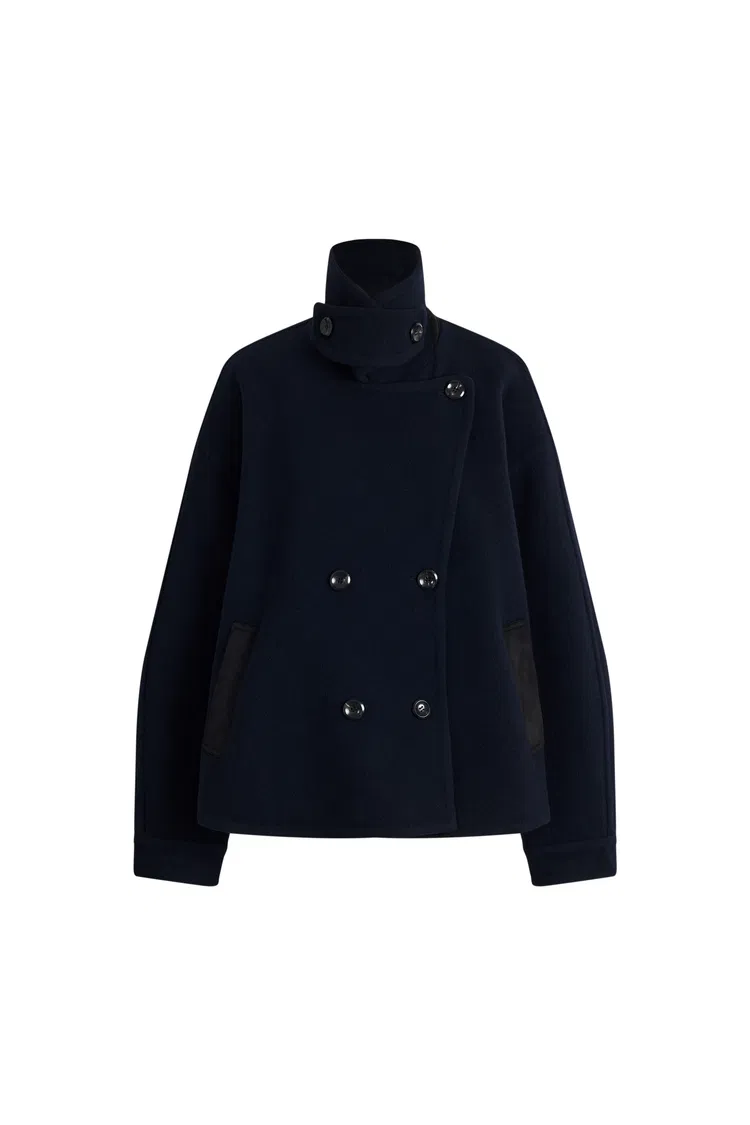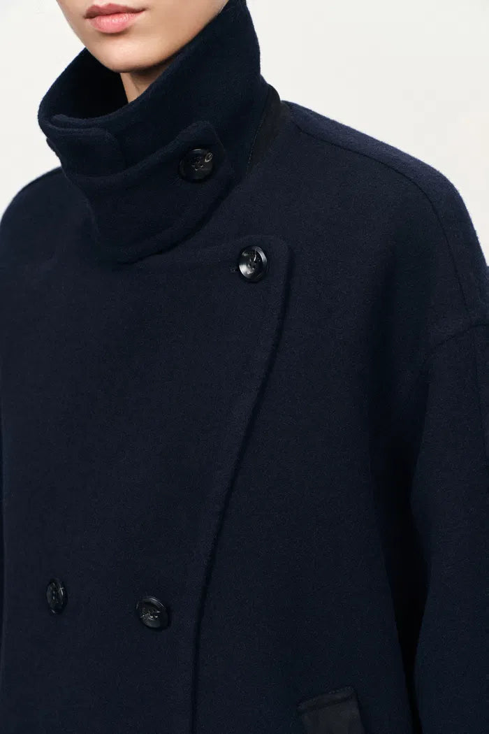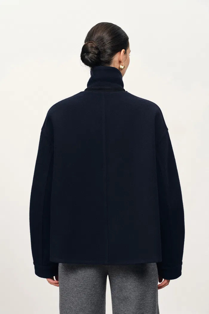 Trevor Midnight Blue Poncho Coat in Merino Wool Tweed