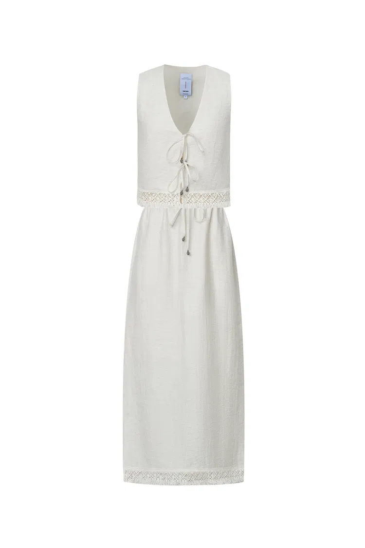Velia Fringed Vest Set in Cotton Linen