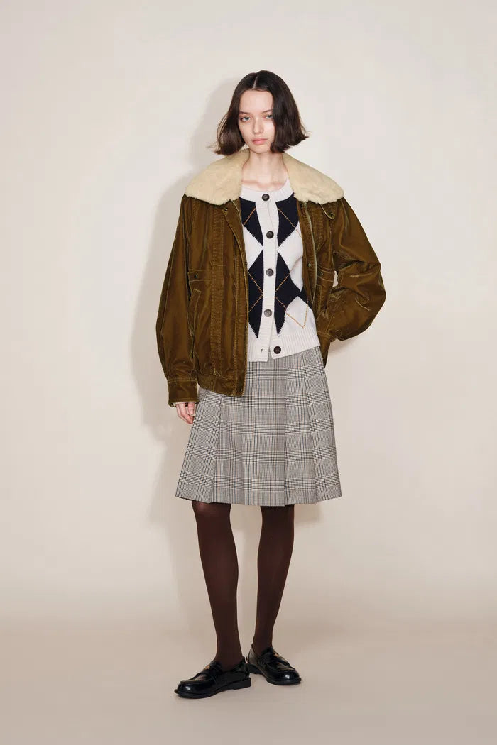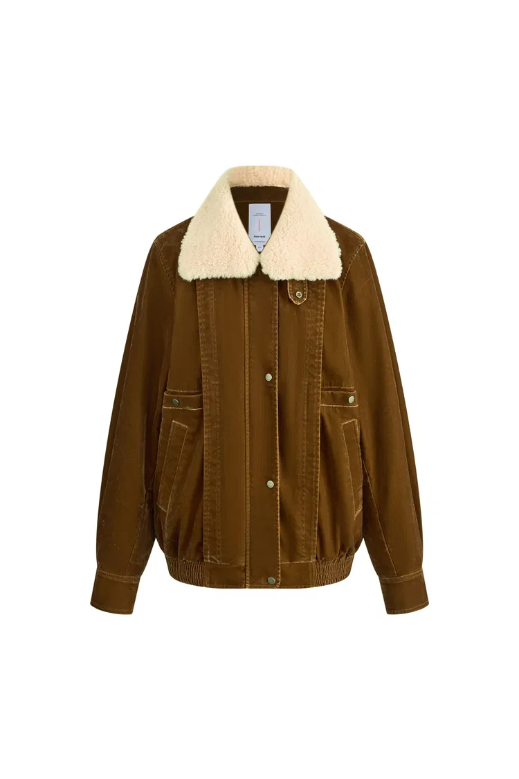 Veronica Faux Fur Collar Jacket in Washed Velvet Denim