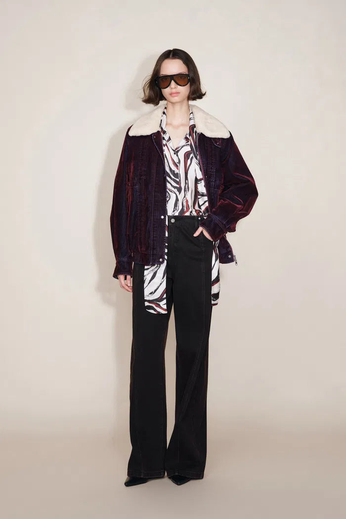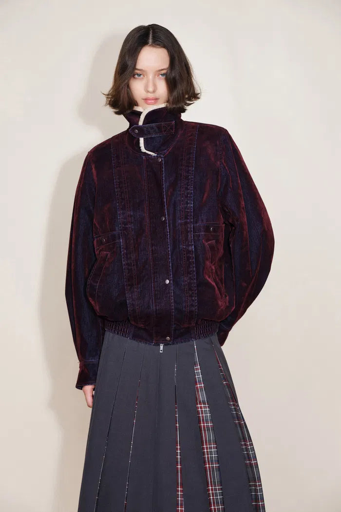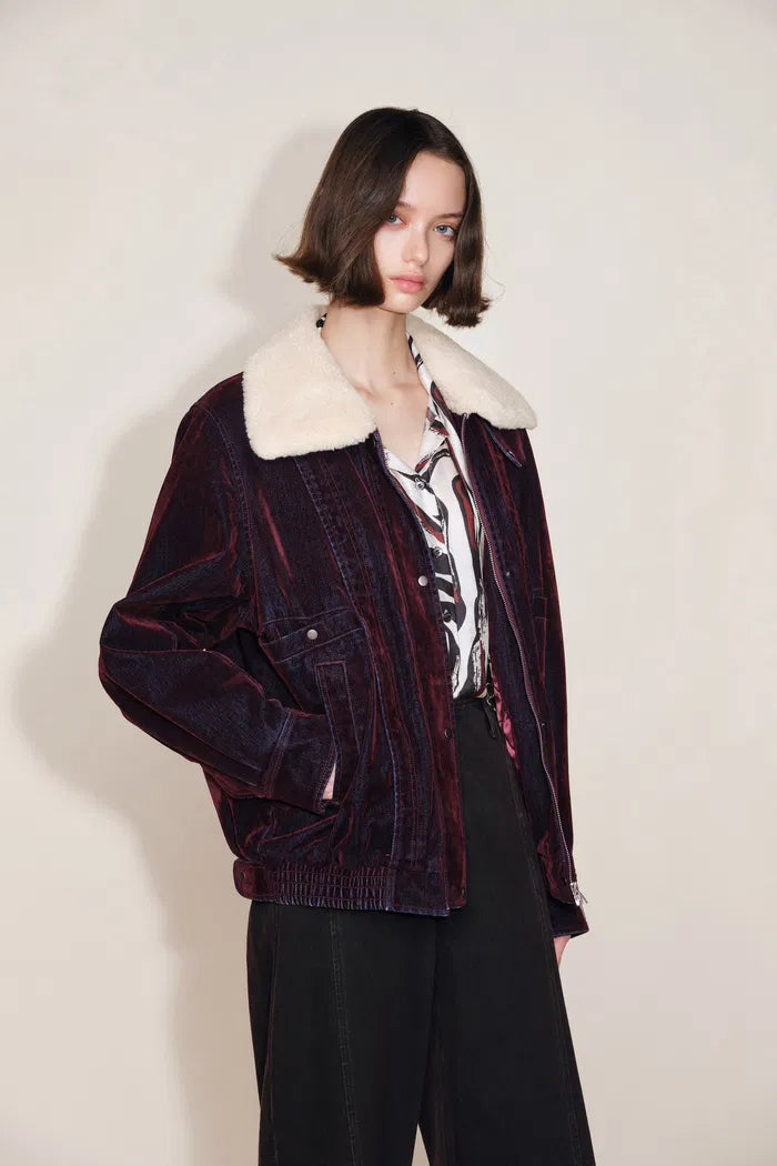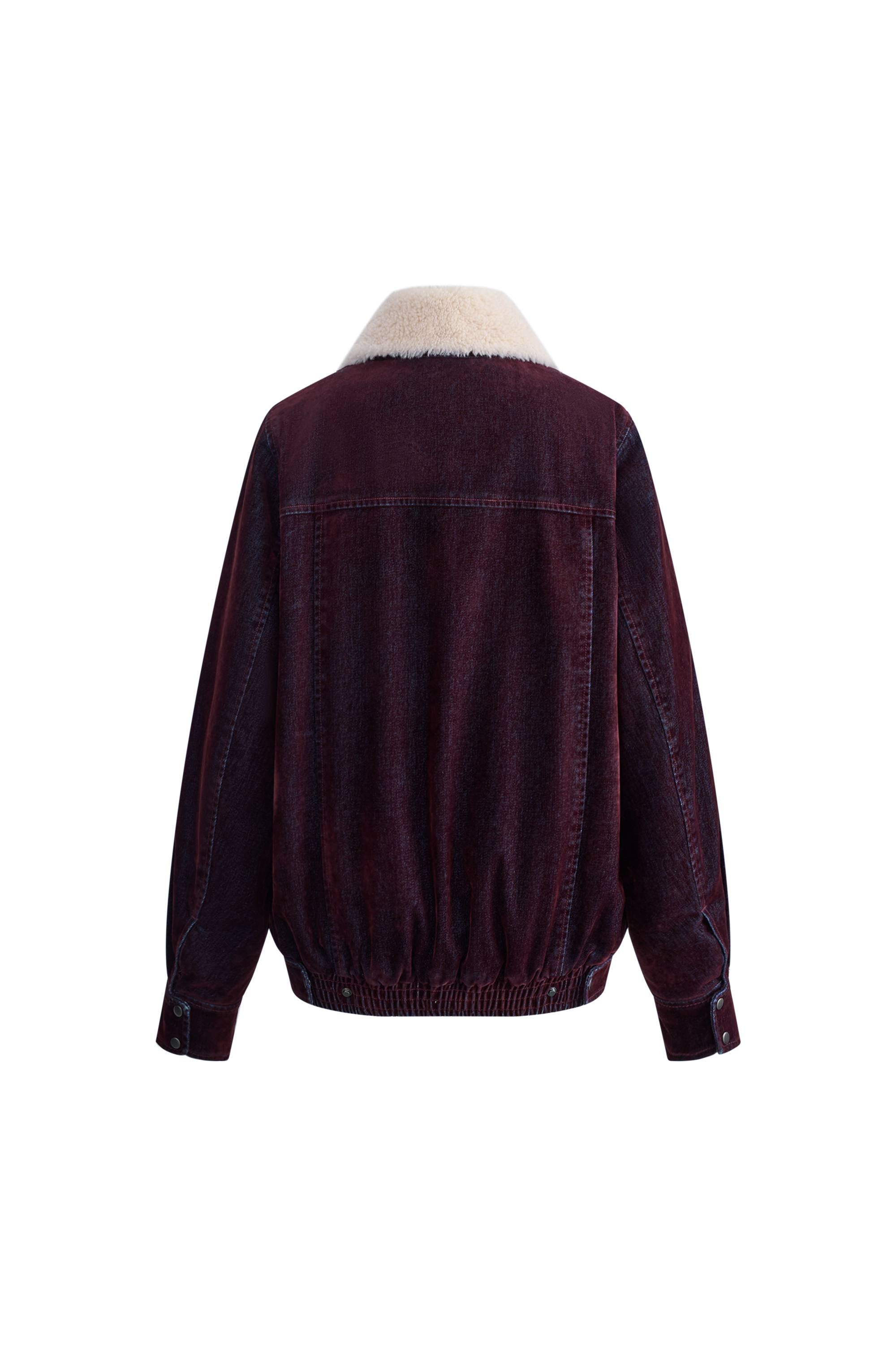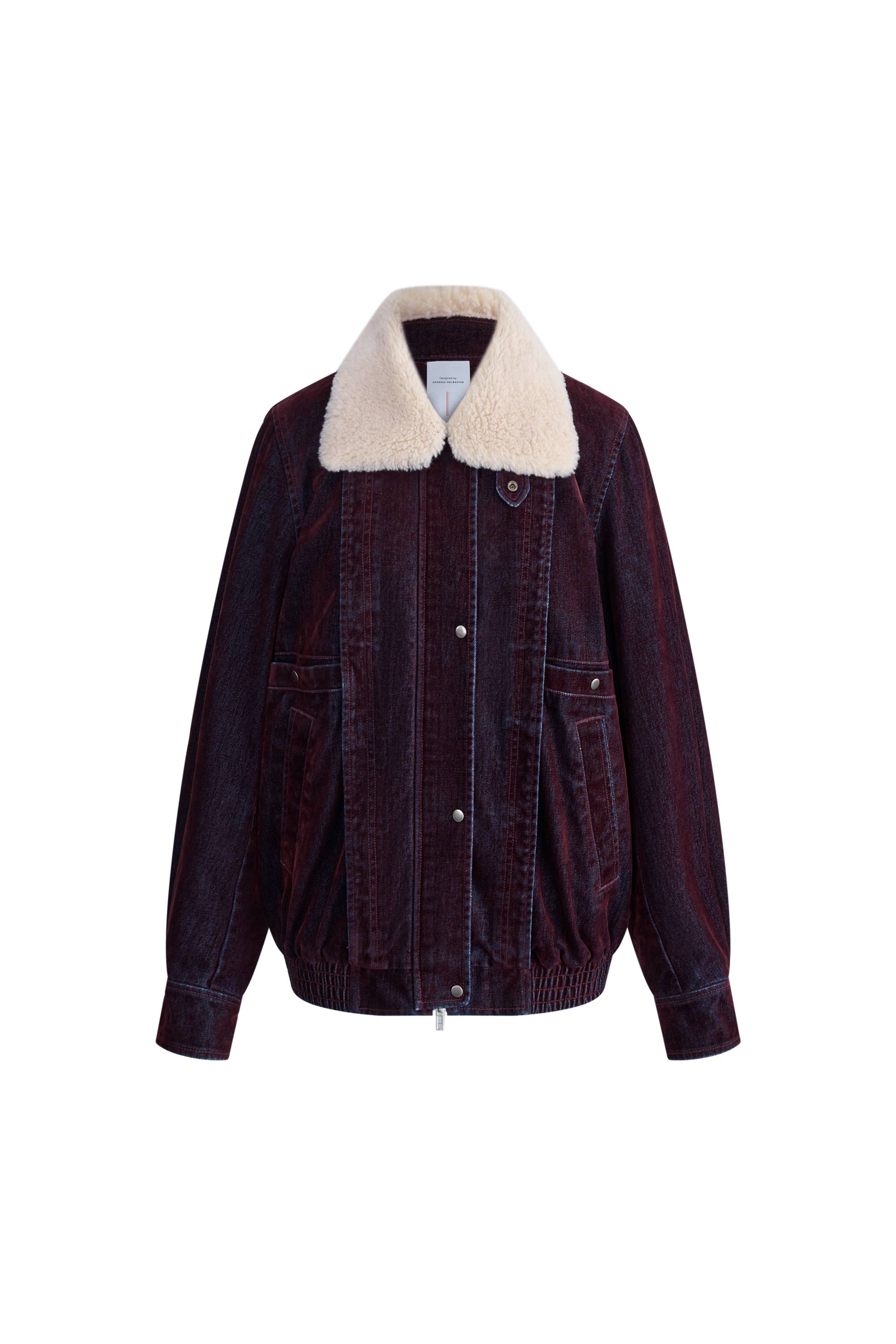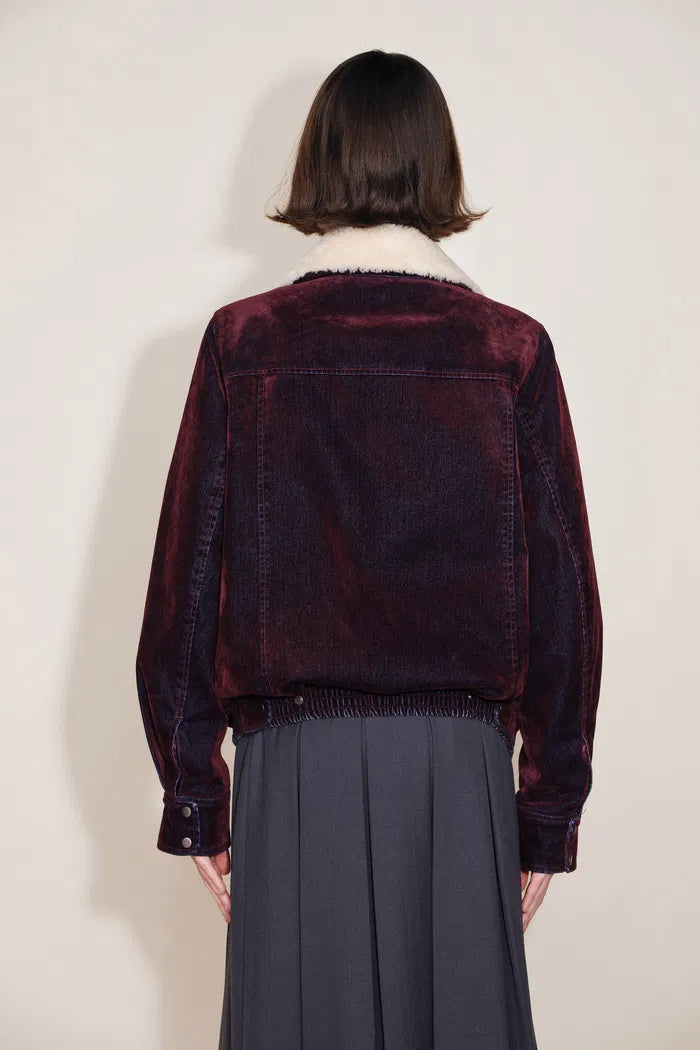Veronica Faux Fur Collar Quilted Jacket in Flocked Denim