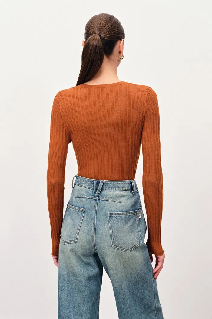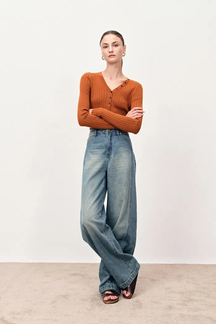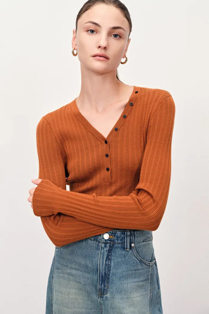 Vivi Henley Top in Stretchy Rib Knit Merino Wool