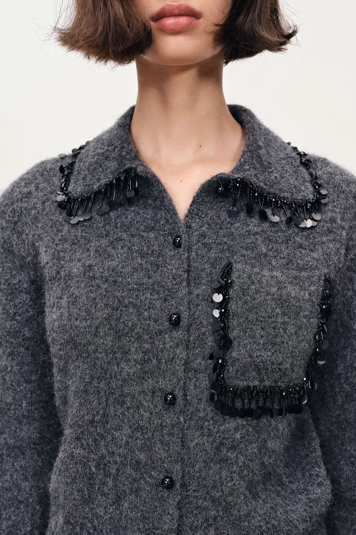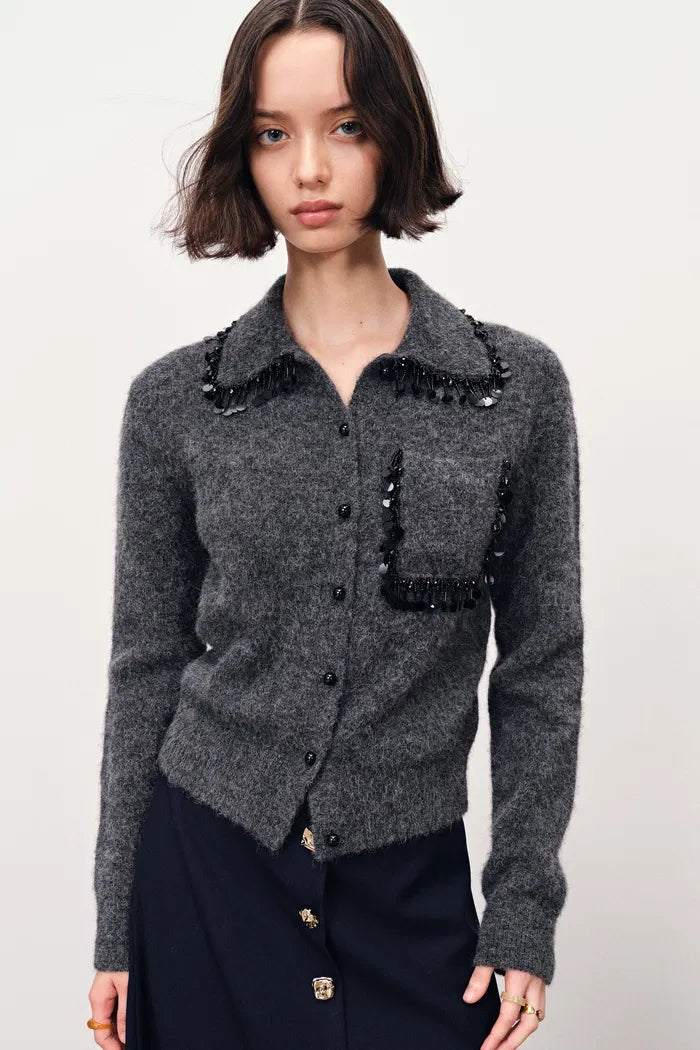Vivienne Beaded Collar Sweater in Alpaca Blend