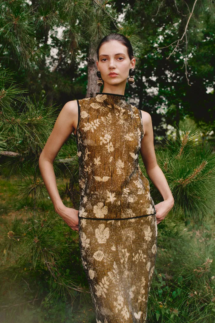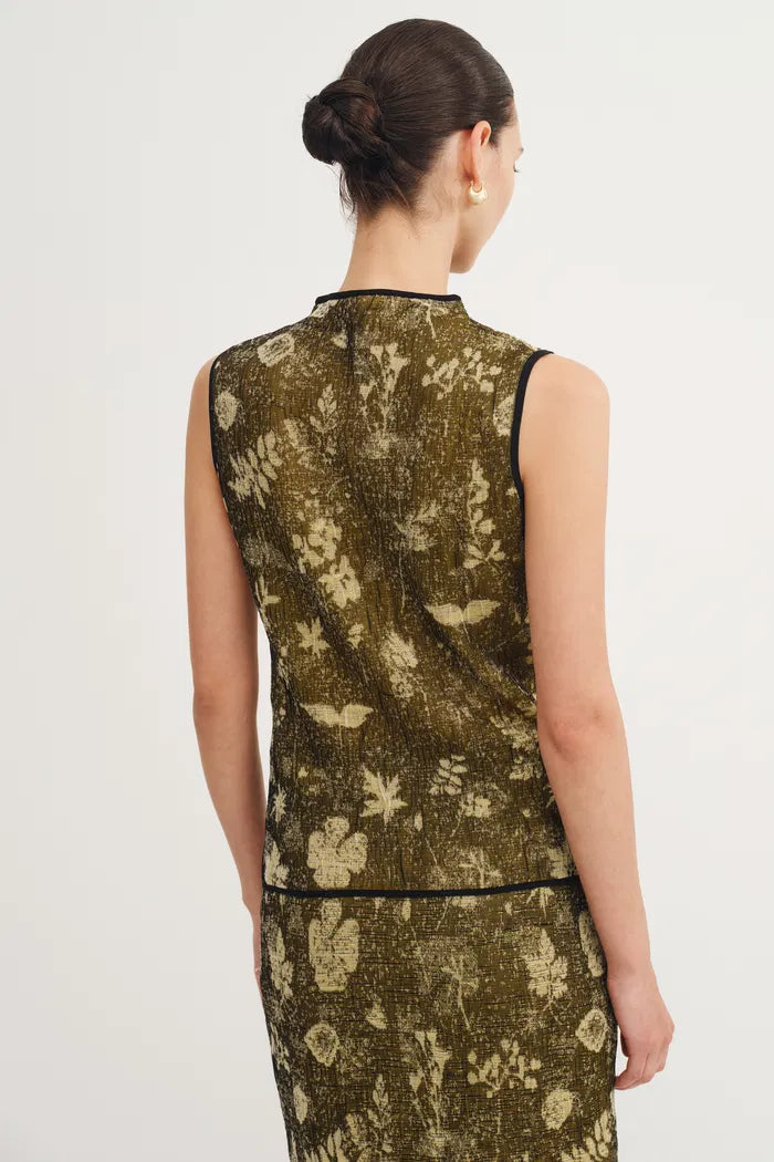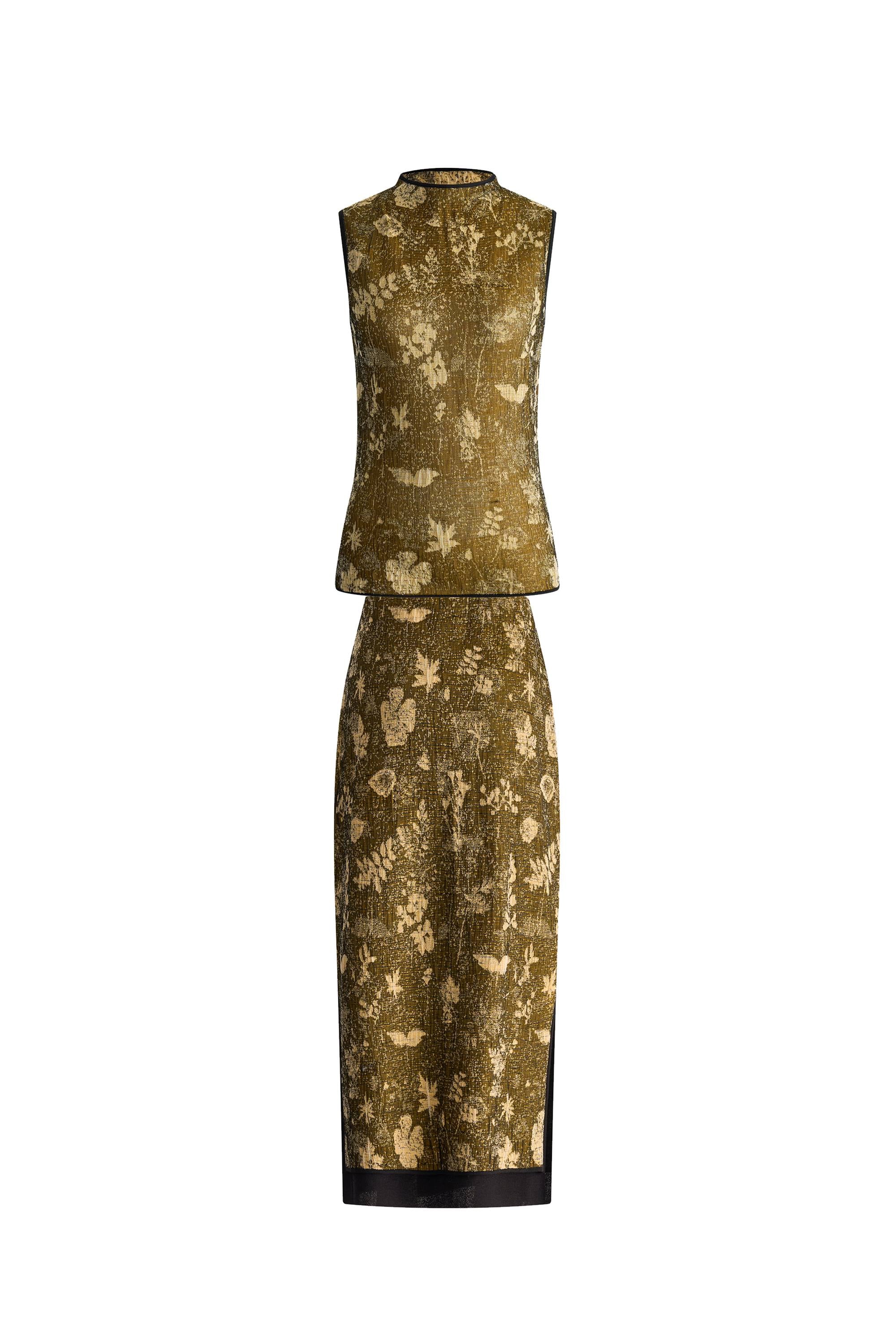Wind Jacquard Sleeveless Top and Skirt Matching Set in Burnout Silk Georgette Knit