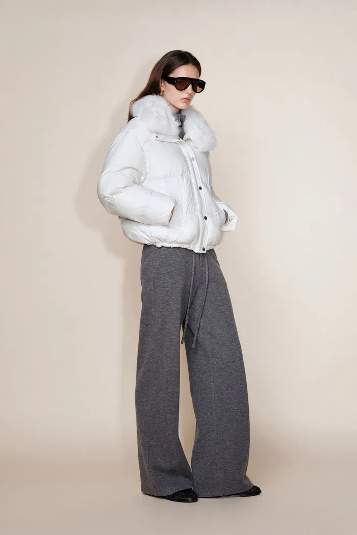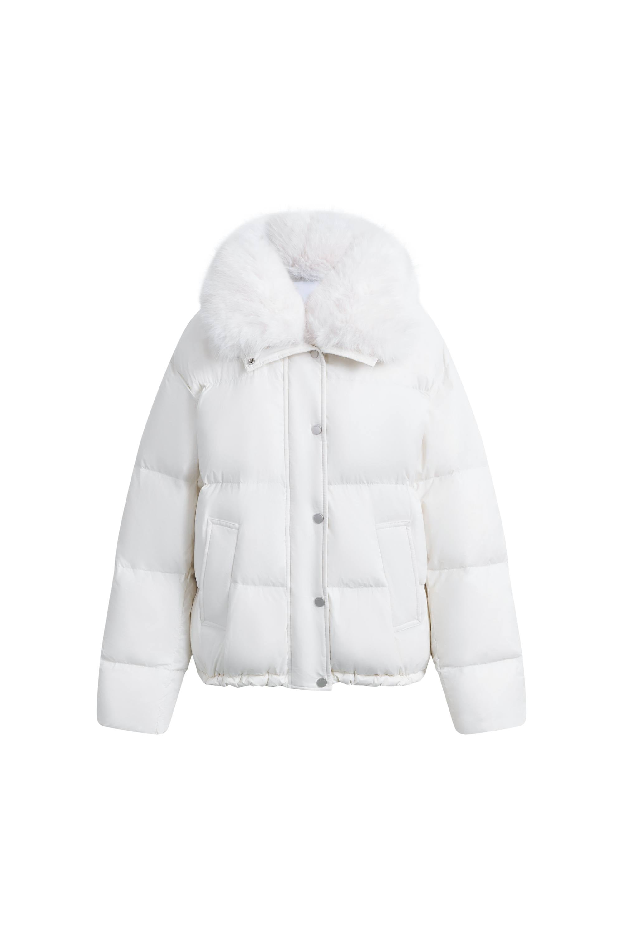 Winnie Detachable Fur Down Jacket in Faux Leather