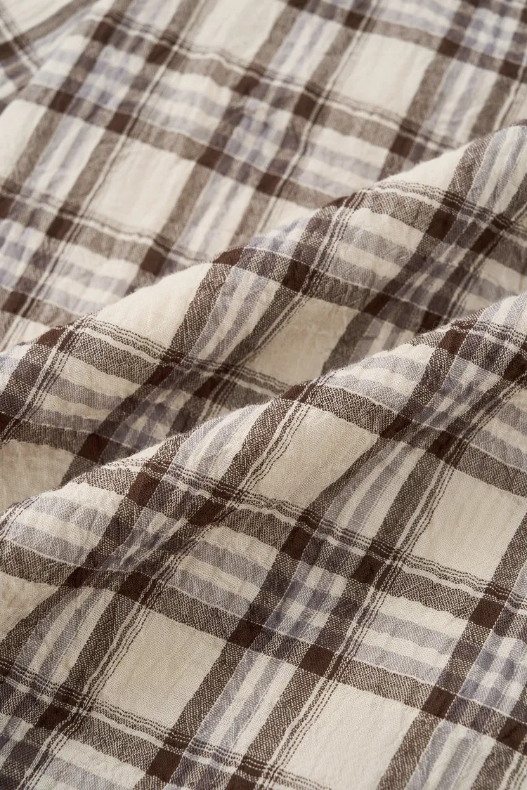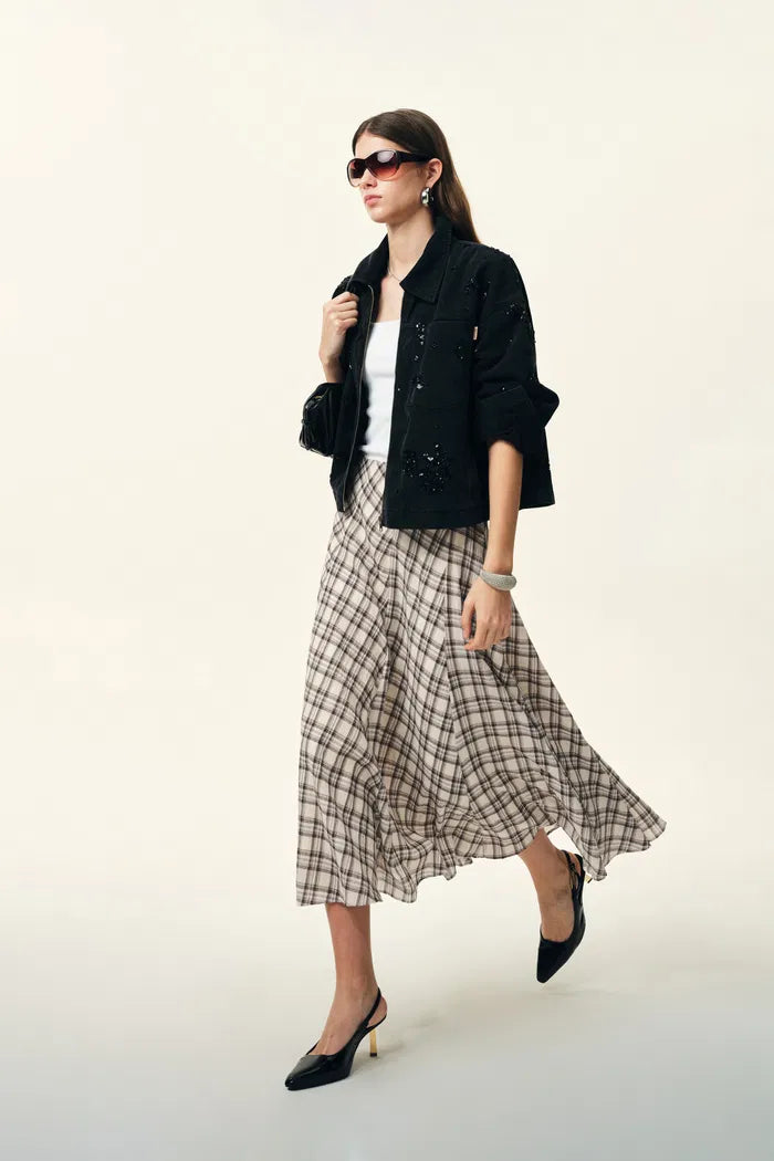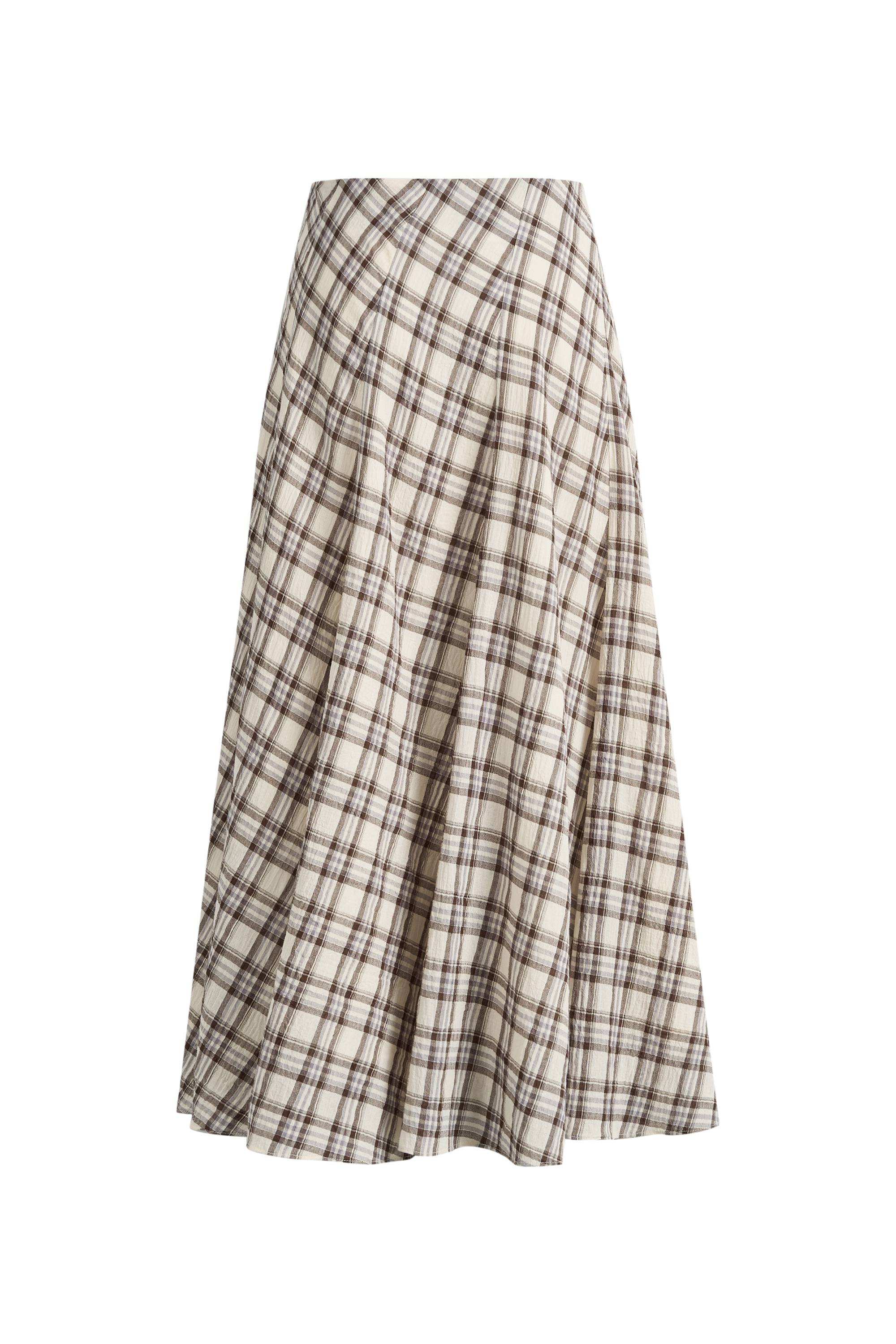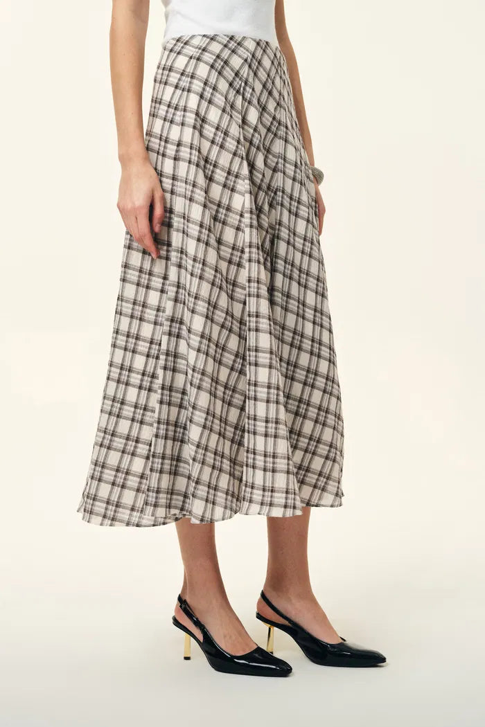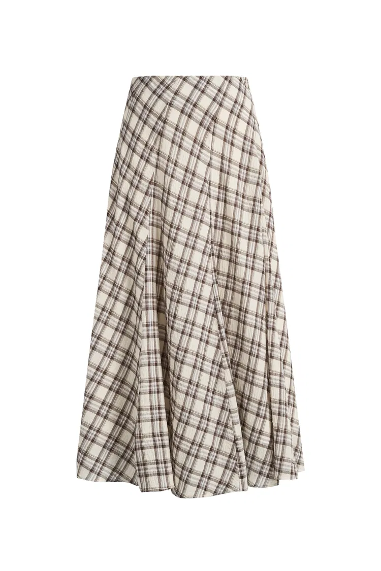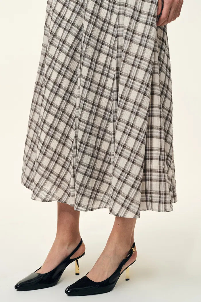 Xaviera Midi Plaid Skirt in Bubble Crinkle Cotton