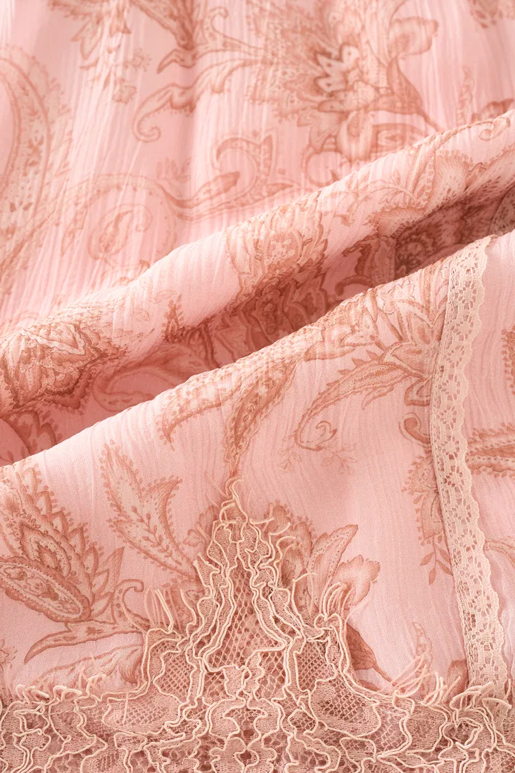 Xyla Semi Sheer Blouse in Silk Crepe with Paisley
